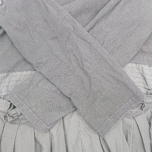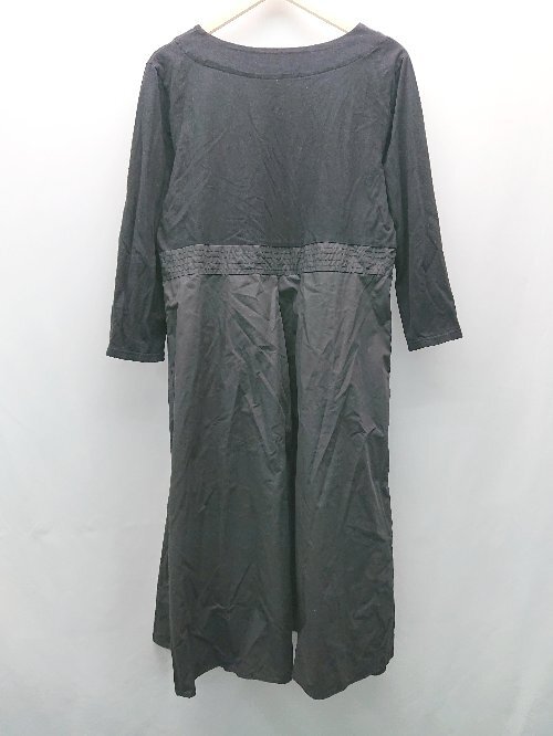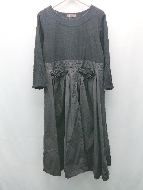 ◇ FRENCH PAVE フレンチパヴェ ラウンドネック 異素材 プリーツ 長袖 ロング ワンピース 表記なし ブラック レディース E