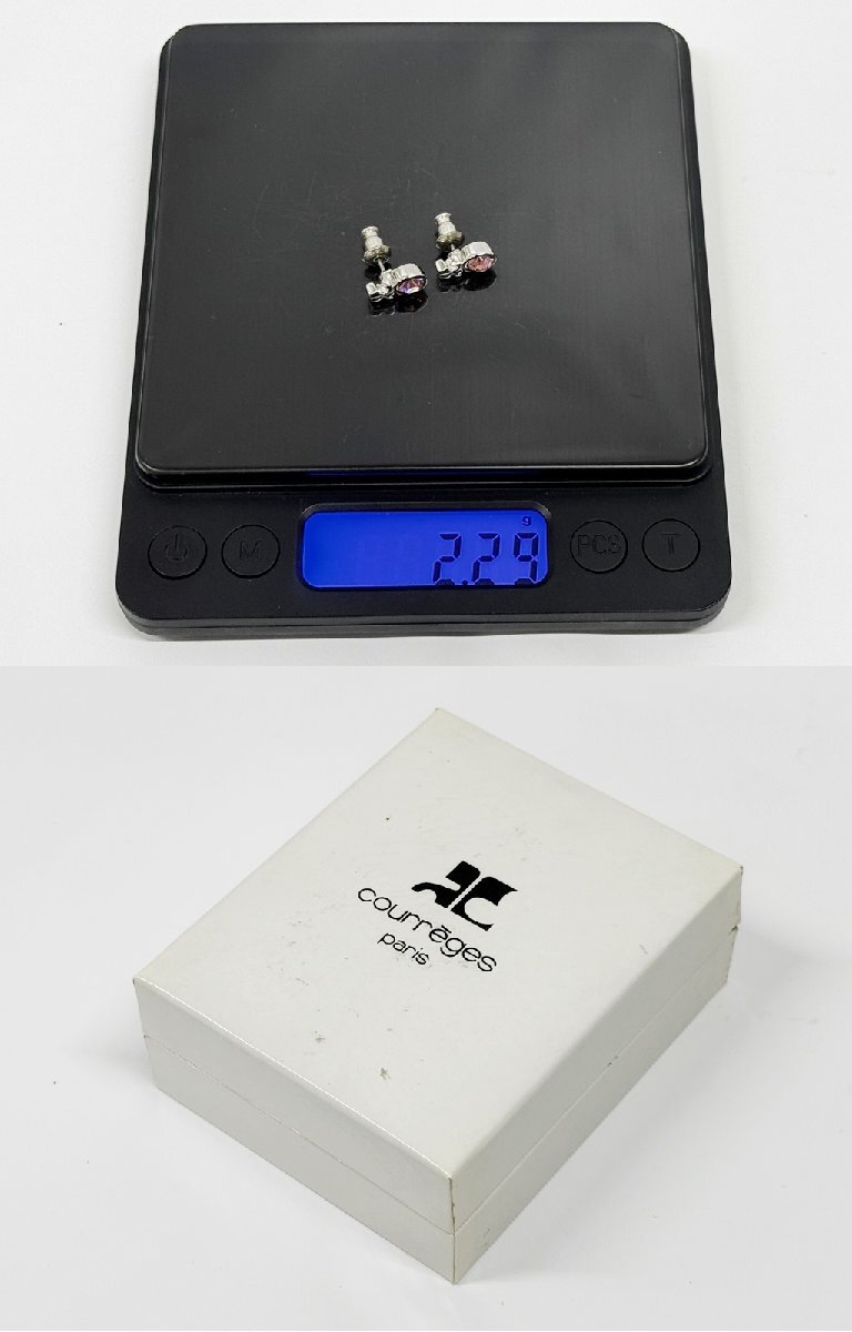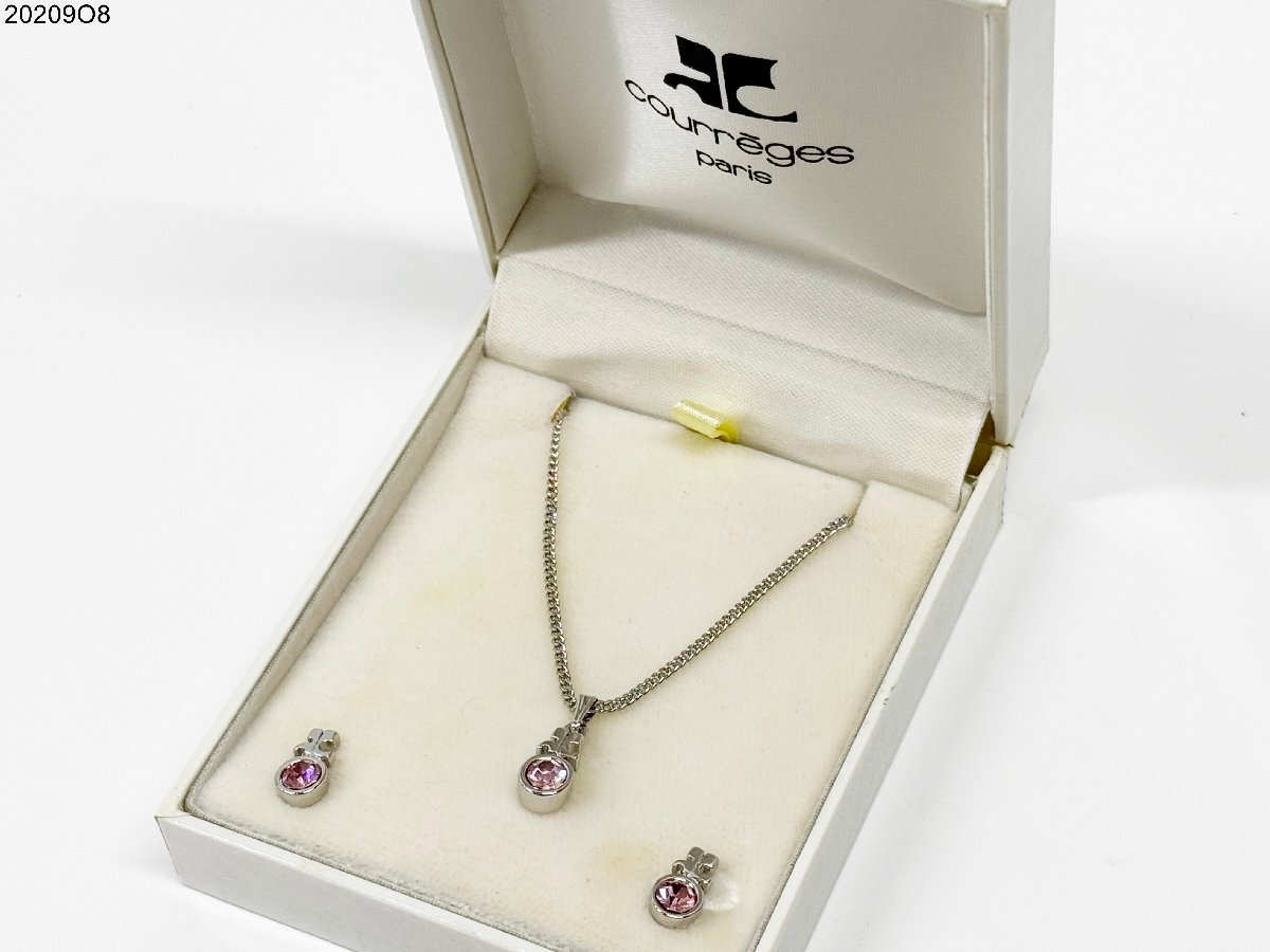 courreges クレージュ ネックレス ピアス ピンク カラーストーン ロゴ シルバーカラー レディース アクセサリー ケース付 20209O8-21