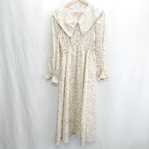 ◇ ⊂ OLIVE des OLIVE オリーブ デ オリーブ 花柄刺? 長袖 ロング ワンピース サイズF アイボリー レディース E
