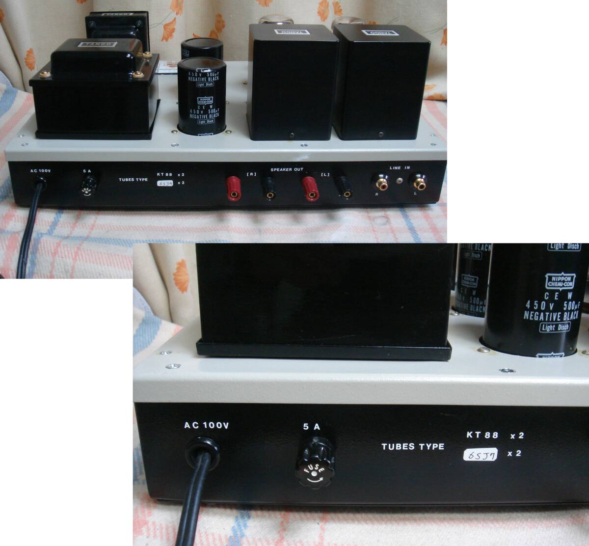 写真の様な比較的綺麗な、タンゴトランス(FS-20Sシングル用) 使用 KTー88アンプ 真空管全て新品交換済み テスト済みOK です。