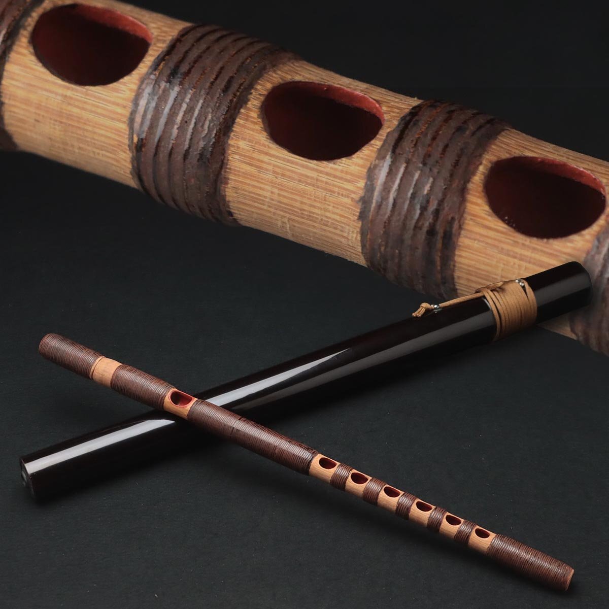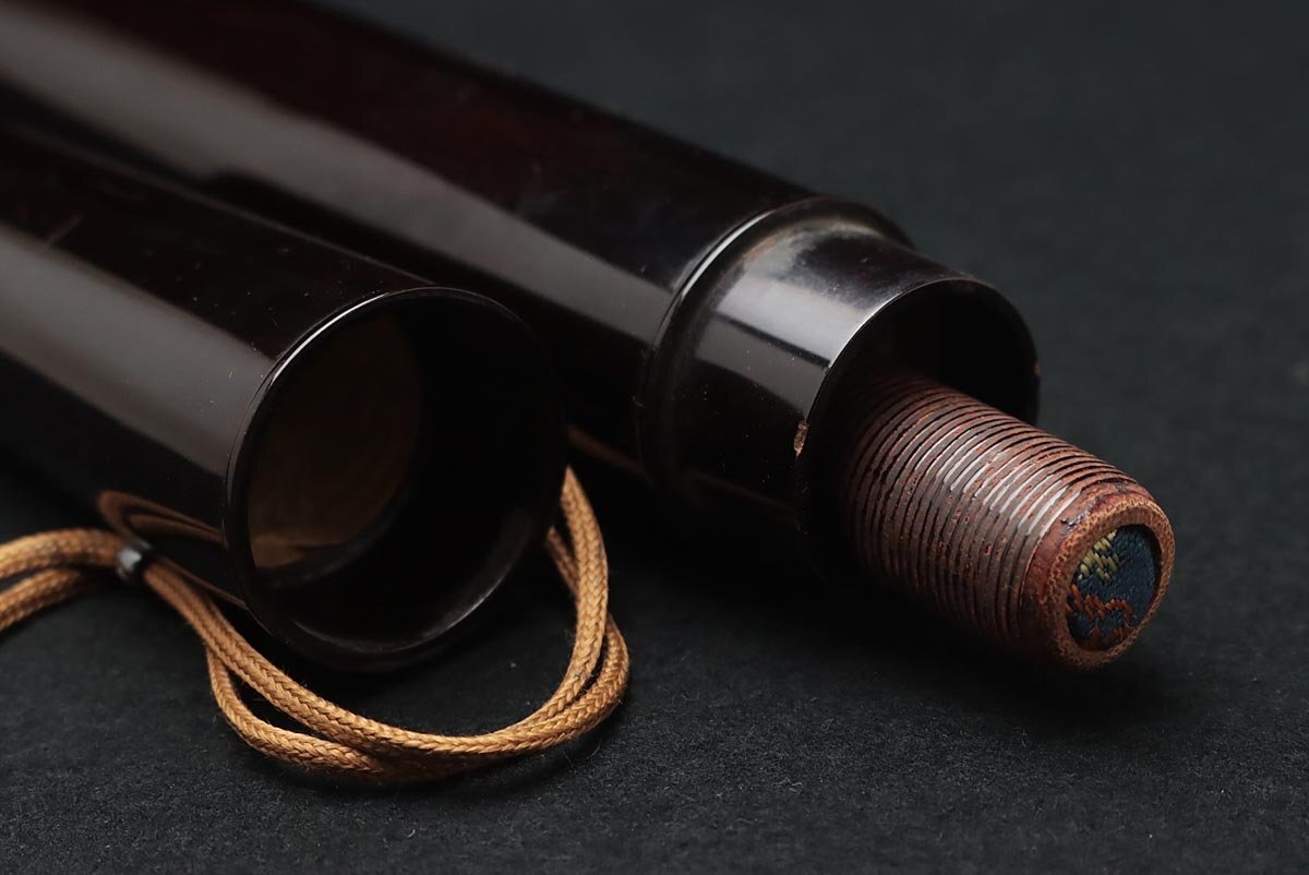 | ◆ 伝統和楽器 竹製/内朱「神楽笛」六孔 全長36.5cm 漆筒入 笛袋付 雅楽 唐楽 管楽器 横笛 古美術 ◆
