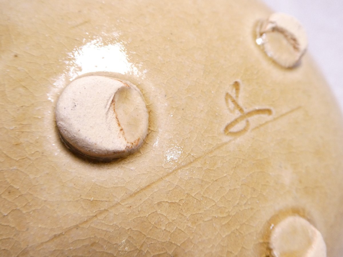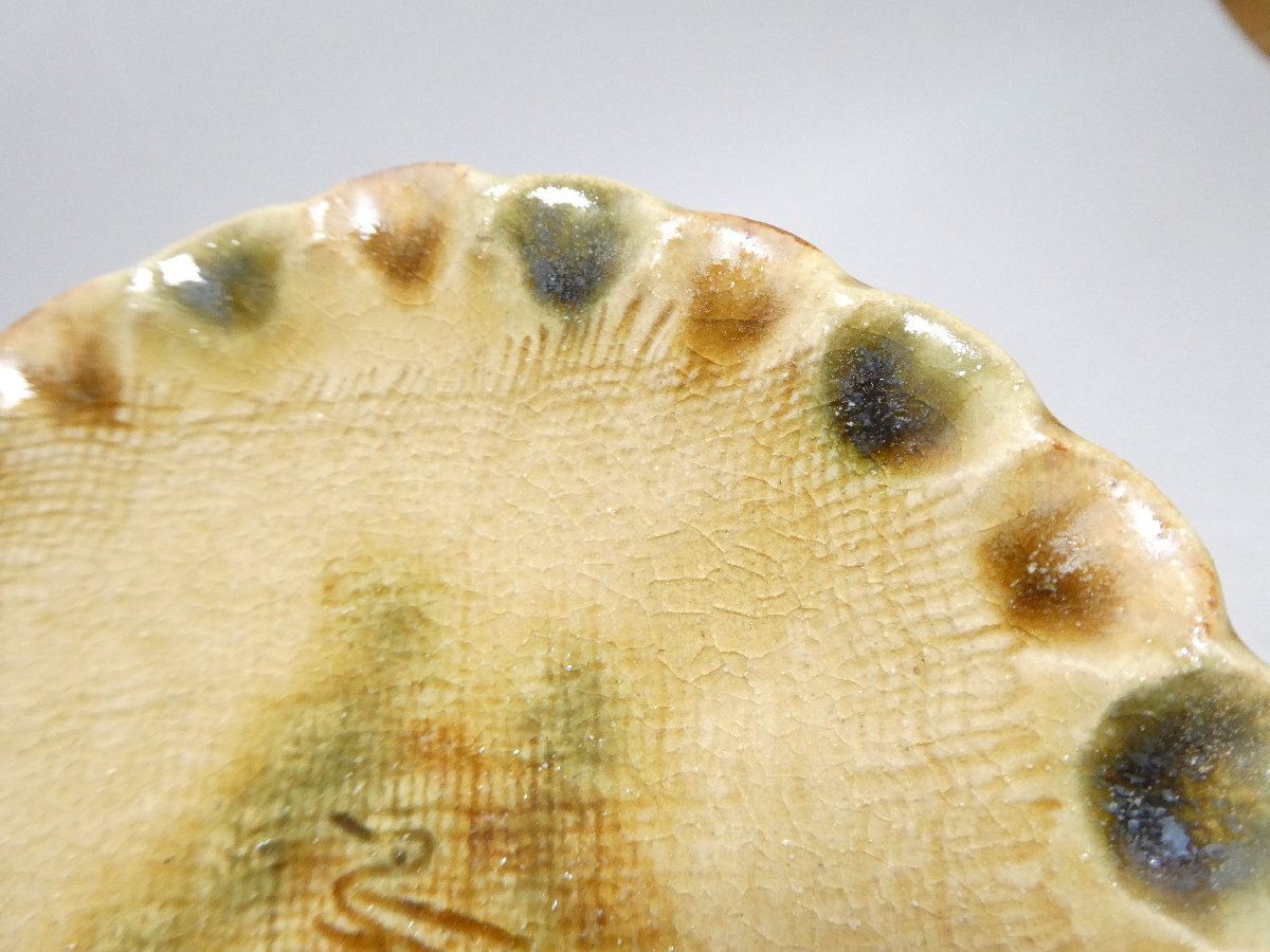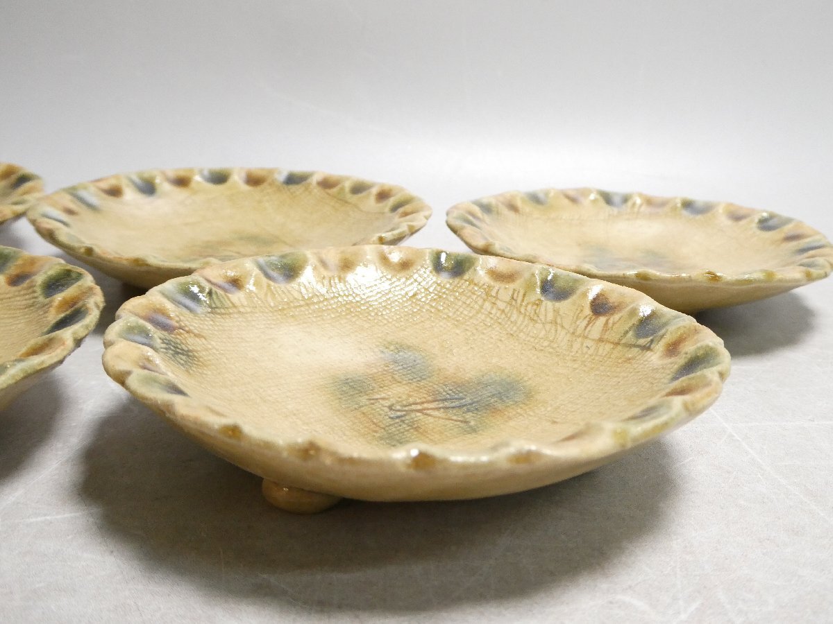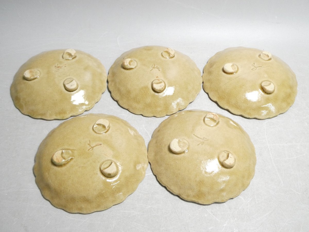 120905 人間国宝 加藤卓男 幸兵衛窯 黄瀬戸 指押皿 五客 共箱