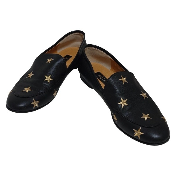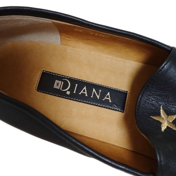 ダイアナ DIANA スリッポン 23.5 - レザー 黒×ゴールド レディース 刺繍/スター(星) 靴
