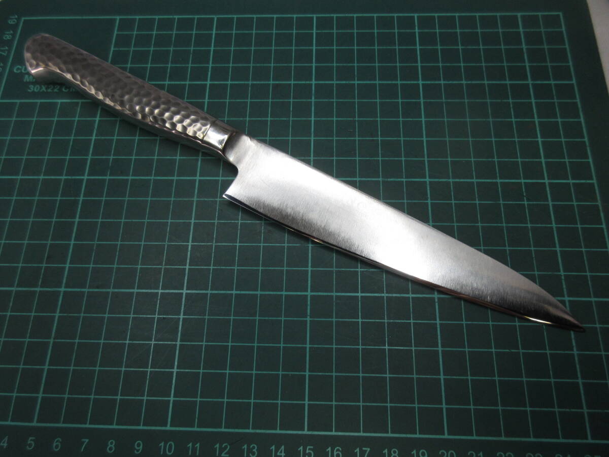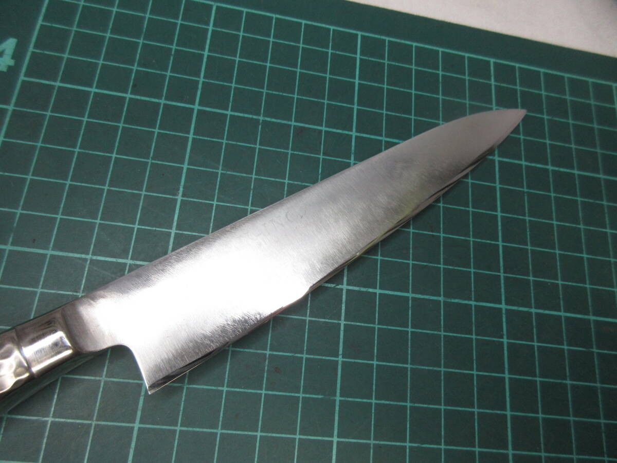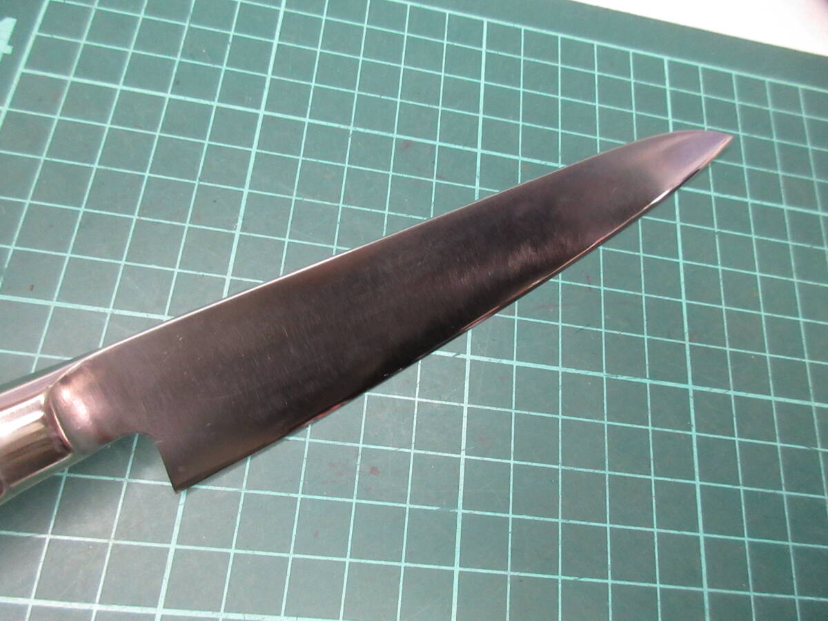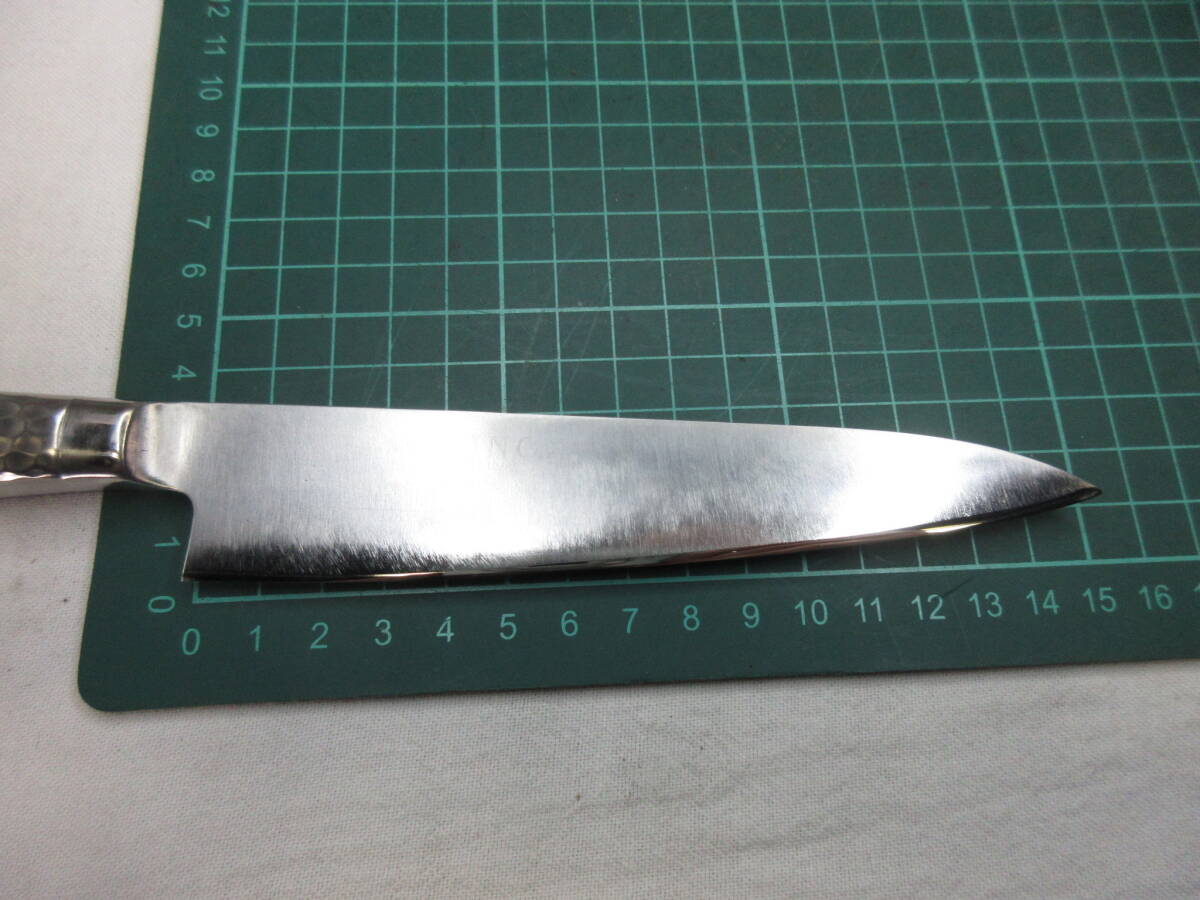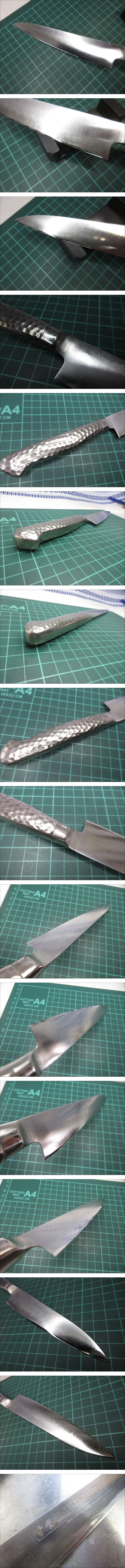 | 「受取連絡」が出来ない方の入札はお断りします。 こちらから評価を入れることはありません。 ■■■■■■■■■■■■■■■■■■■■■■■■■■■■■■■■■ ペティナイフ15cm モリブデン鋼 最後の写真は磨き前です。銘は消えました。 歪みや反り、落としきれない錆があります。全体的に使用感があります。 包丁のみの出品です、付属品はありません。 ■■■■■■■■■■■■■■■■■■■■■■■■■■■■■■■■■ 発送はレターパックです。(補償はありませんのでご注意ください。) 送料を抑えたい方はライト(430円)を選択してください。(ただし厚さ制限のため簡易包装です、新聞紙で包む程度ですので輸送時の衝撃で包丁の歪みや破損のリスクがありますのでご理解ください。) プラス(600円)は衝撃対策で厚めの梱包をします。(複数同梱の場合は包装が簡易になります。) 刃渡り21cmまではレターパックで発送できると思いますが長い刃は着払いゆうパックになります。 小振りな包丁なら3本くらいまでライトで同梱できます。プラスなら5本までは入ると思いますが21cm以上の包丁が絡むと本数が限られます。 以下は定型文です。 洋包丁は両刃、和包丁は片刃を前提に出品しています。 (タイトルと個別情報に刃付けの記載が無ければ上記のとおりです) 他の出品物と同梱できます。(システム上、着払いとのまとめ依頼ができません。落札後に同梱希望のメッセージを頂ければ対応します。) 送料と材質についての質問には返答しません。 包丁につきましては全てジャンクとし、ノークレームノーリターンでお願いします。 出品からお品物が届くまでに時間が掛かった場合、鋼などの材質ですと変色や錆などの変質がある場合がございますのでご了承ください。 錆の酷い包丁は再生研磨していますが、あくまで素人仕事です。電動工具を用いての仕上げです。 削る、磨くは出来ますが歪みの修正は出来ません。中古品ですので歪みがある前提で入札してください。 磨きにより錆に強くなるメリットがありますが切った食材が張り付くデメリットがあります。 切れ味が悪いや、思ったより汚いなどのクレームはご遠慮ください。 触れば怪我をするほどの最低限の刃付けはしてあります、開封時にご注意ください。 肉眼での検品ですので微細な傷や欠けを見落としている可能性もありますので写真を参照してください。 現状維持のために防錆目的で椿油を塗布していることがありますので写真に不自然な艶が写っている時があります、ご了承ください。 (鋼の洋包丁の場合は中子にも塗布するために柄にも油が散布しています。ご使用前に洗浄してください。) 中子やリベットの錆を落とす為に柄ごと研磨する場合がありますので、柄に研磨痕が残っている時があります。 柄の仕上げに軽く蝋引きしています。 片刃の場合、研ぎですが砥石傷が付くのを嫌ってベタ研ぎはせず、峰をわずかに浮かして仕上げています。(綺麗な裏押しの和包丁はベタ研ぎです) 10対0ではなく9対1位の感覚です、完璧な片刃をお求めの方は入札をご遠慮ください。 (和包丁は片刃前提です、洋包丁が片刃の場合にはタイトルと個別情報に片刃と記載してあります) 有効利用、再生利用できる方の入札をおまちしています。 写真で判断いただき、商品説明を理解出来る方のみ入札をお願いします。 クリーニングなどはせず、写真のままお送りします。 専門知識が乏しい為、質問に答えられない時があります。 ブランド品の真偽については不明とさせて頂きます。 素人による中古出品です、すり替え防止の為にもノークレームノーリターンでお願いします。 入金を確認しました時点でお取り置き終了と判断し発送準備にはいります。 同梱発送、お取り置きを希望の方は入金前に連絡頂くと助かります。 落札後、48時間以内の初回連絡、五日以内の入金が確認出来ません場合は落札者様都合のキャンセルとさせて頂きます。 その場合落札者様に非常に悪い評価とブラックリストへの登録を同時に行いますのでご了承ください。 (以後こちらのオークションに入札が出来なくなります) #お取引に不安を感じる評価の方は削除させて頂く事があります。 #総合評価が高くても直近に悪い評価がある方も削除致します。 #いたずら入札を防ぐ為、1万円以上の入札額時の場合は新規の方の入札をお断りします。 #(どうしても入札したい時は質問欄より入札意思をお伝えください。) *評価を入れて頂くと反射的にお返しする形を取っています、不要の方は評価を入れないで下さい。 *こちらから評価をお付けすることはありません、不要の方は「受取連絡」で終了して下さい。 自己紹介欄もあわせてお読みください。 | ||