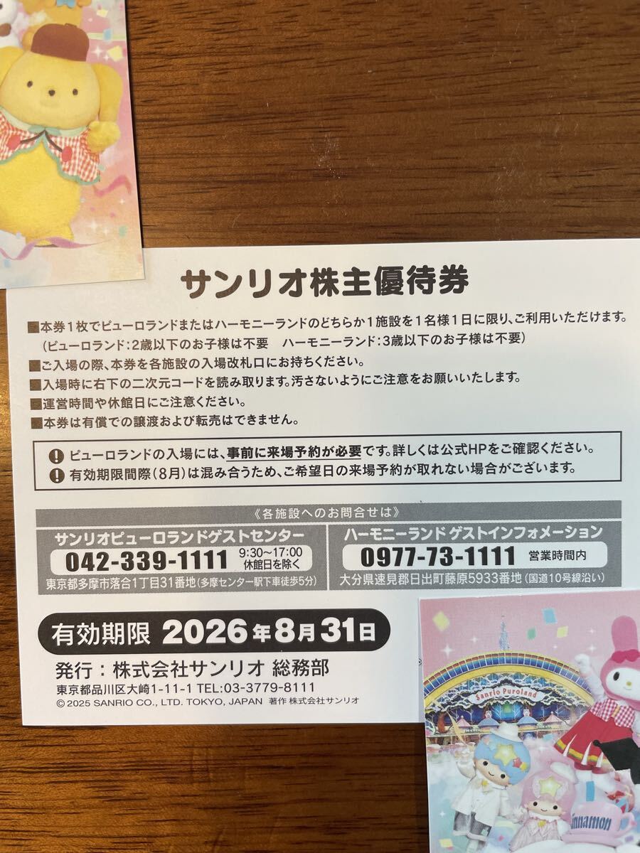 ピューロランドまたはハーモニーランドに入場してアトラクションを楽しめる株主優待券です