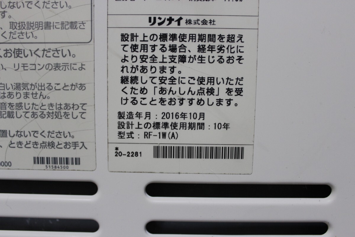 リンナイガスふろがま屋外式RF-1W(A)です。