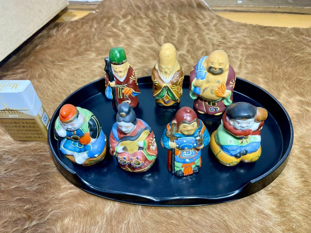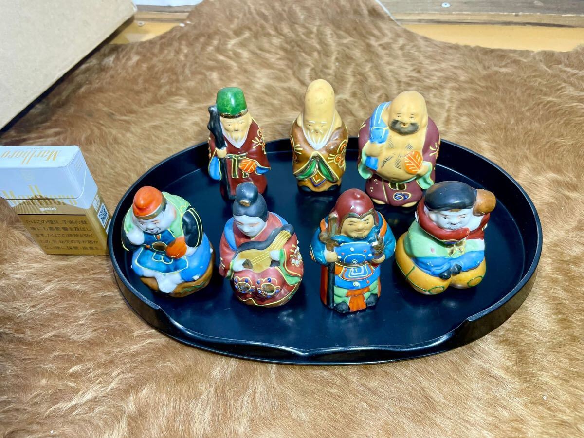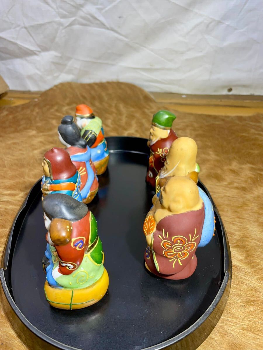 【九谷焼・七福神】陶磁器 置物 7体セット 台座付き 美品