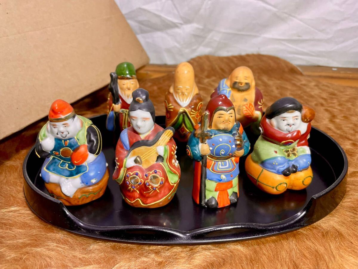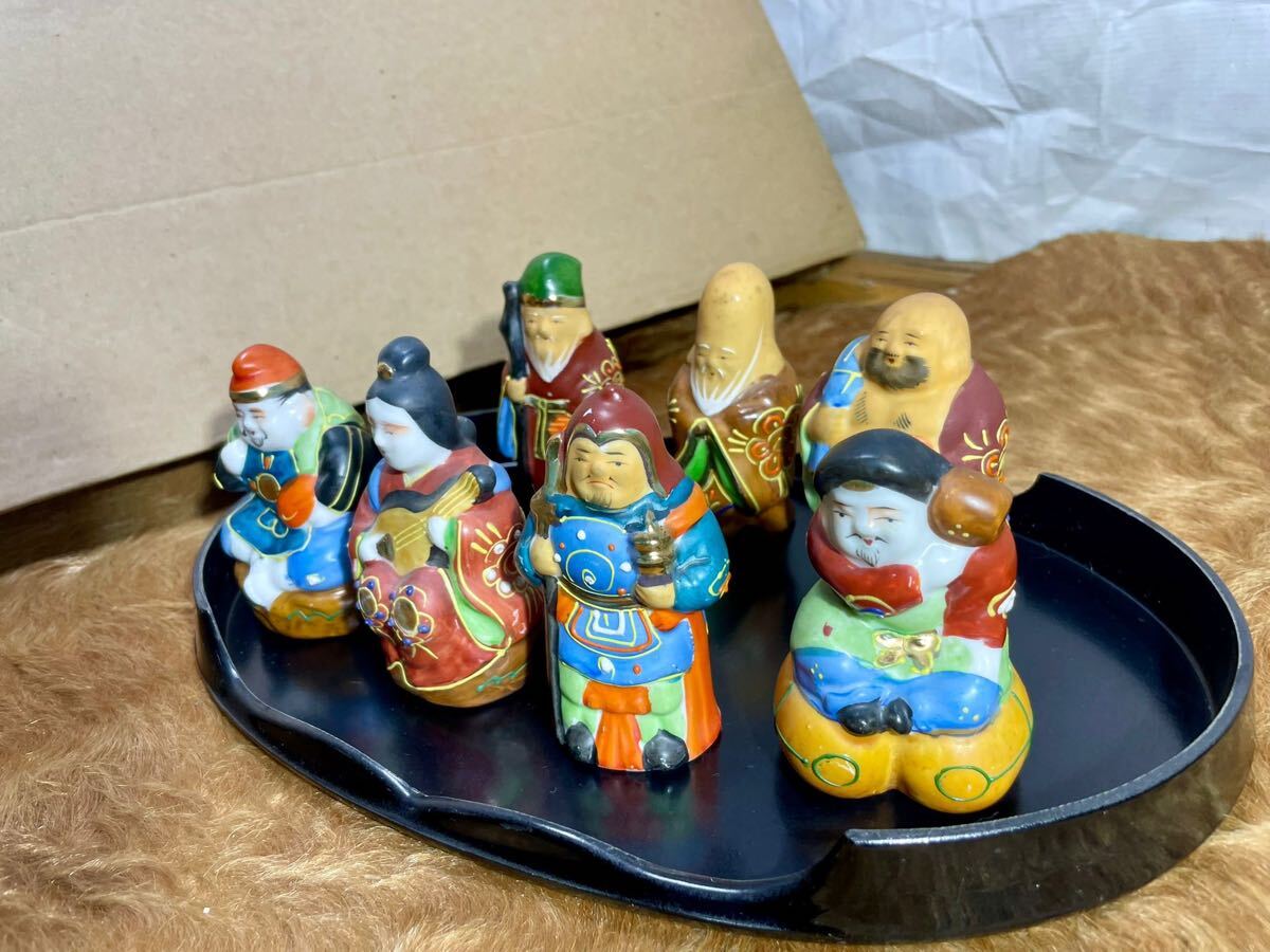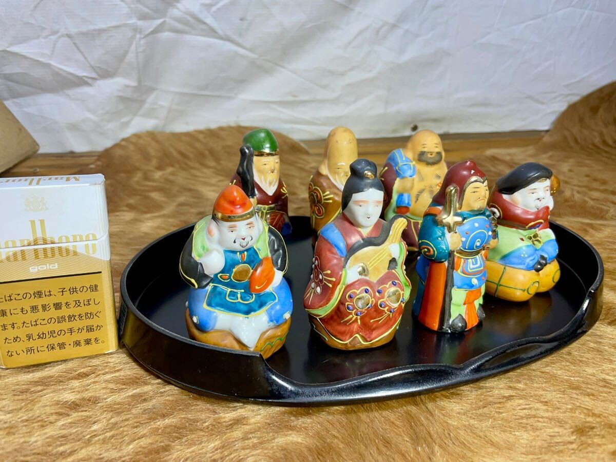 【九谷焼・七福神】陶磁器 置物 7体セット 台座付き 美品