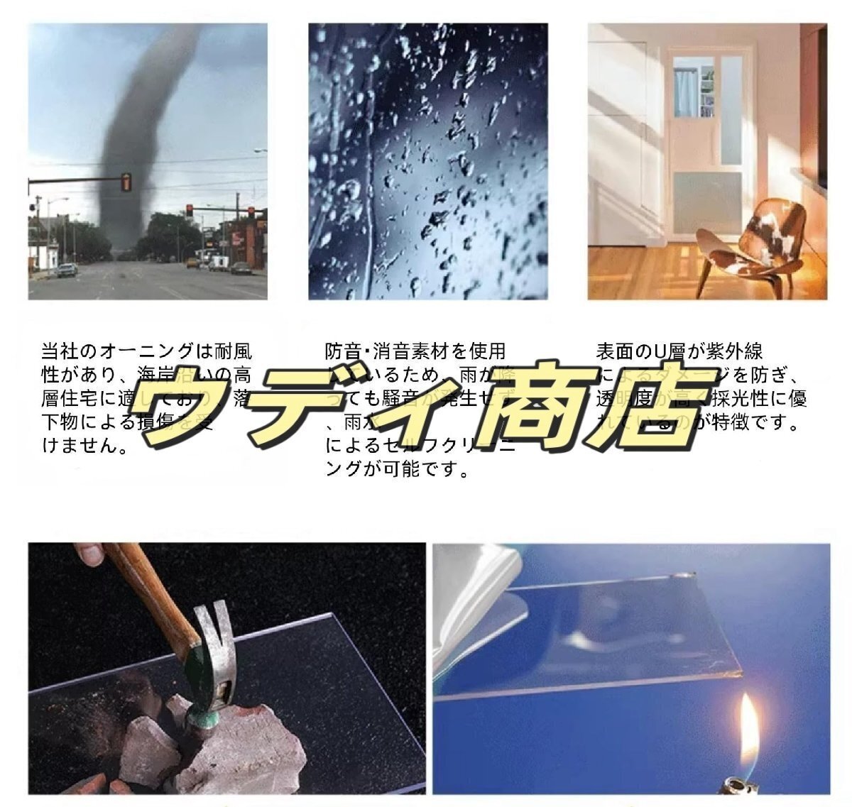 【材質】ポリカーボネートボードは、1平方メートルあたり100KGに耐えることができる強力な支持力を持ち、粉砕に強いです。 【多機能】直射日光を遮り、レインシールド、紫外線の遮断、日焼け防止、風の保護、雨と雪の保護、家の乾燥を維持できます。家の玄関、バルコニー、通