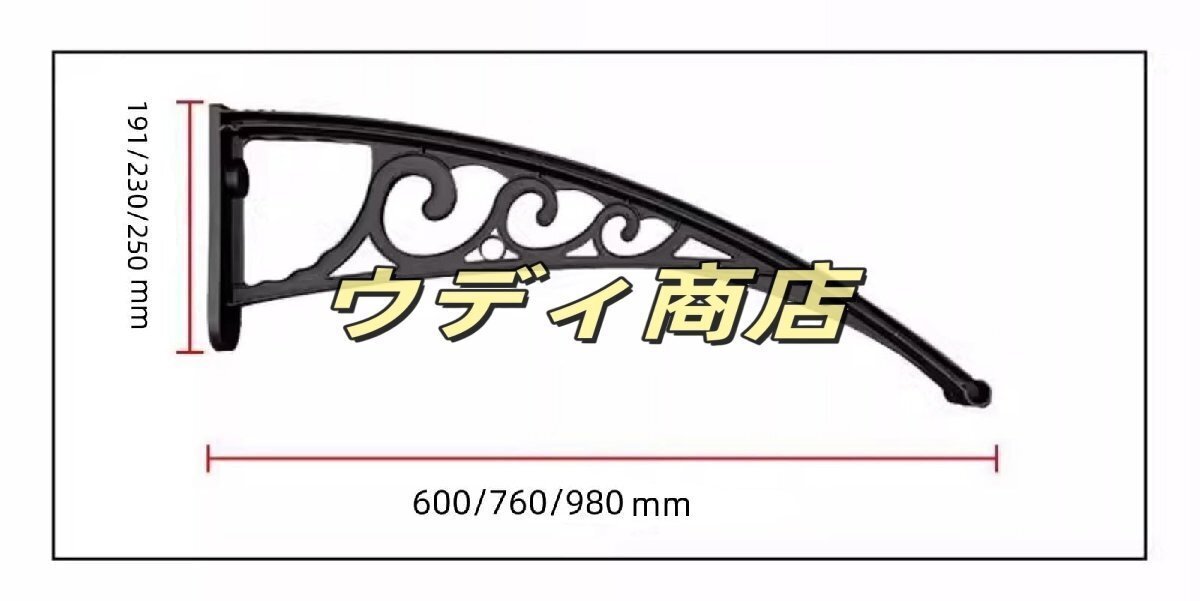 直射日光を遮り、レインシールド、紫外線の遮断、日焼け防止、風の保護、雨と雪の保護、家の乾燥を維持できます。家の玄関、バルコニー、通路、庭のドア、ガレージ、セラー、窓、または建物の風と天候に対する最適な保護です。また、冬の日に雪がたくさん集まってドアを開けない現象を防ぐ時に大活躍です。ポリカーボネートボードは、1平方メートルあたり100KGに耐えることができる強力な支持力を持ち、粉砕に強いです。パティオ雨宿りは凹型デザインにアップグレードされ、より広い玄関、窓、通路をカバーします。正面玄関の雨よけの湾曲したデザインは、目に見えない屋根パネルの張力支持を自然に形成し、雨水はアーチ状の表面に沿って自然に排出されます。 エンデュランスボードは雨水で洗った後、単独で洗浄できます。サイズ:60*60cm , 60*80cm , 60*100cm , 60*120cm , 80*80cm , 80*100cm , 100*100cm , 120*120cm , 60*180cm , 60*200cm , 80*120cm , 80*180cm , 80*200cm , 60*300cm , 80*300cm , 100*300cmパネル材質:PCシートバー材質:アルミニウムオーニング形状:スロープインストールが必須:はいアフターサービスカスタマーエクスペリエンスを重視しています。ご不明な点がございましたら、時間内にお問い合わせください。喜んでサービスを提供いたします。