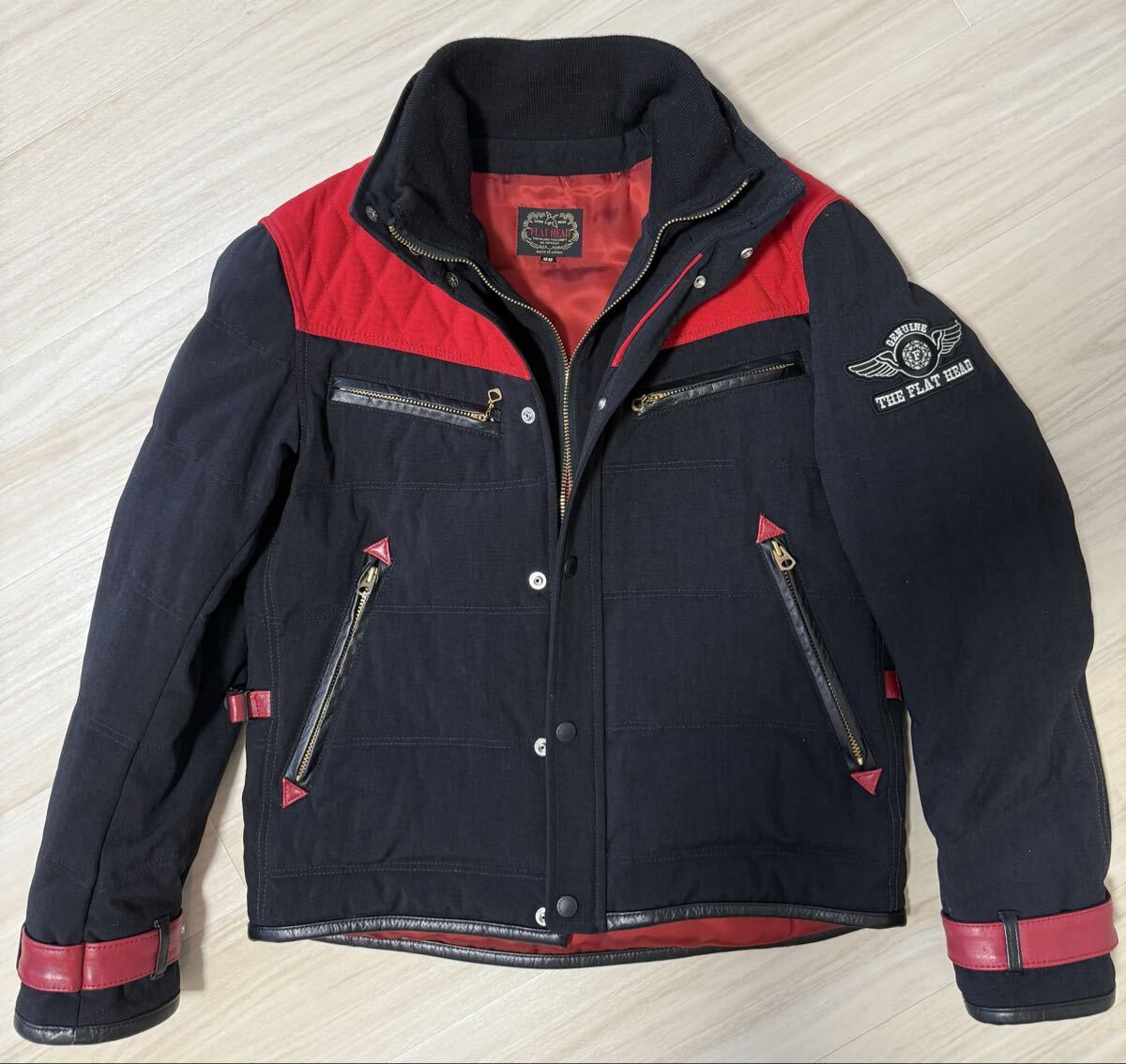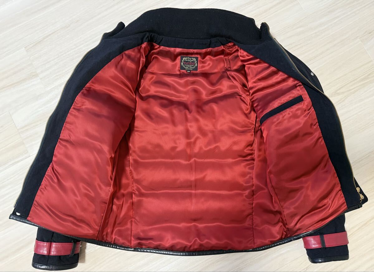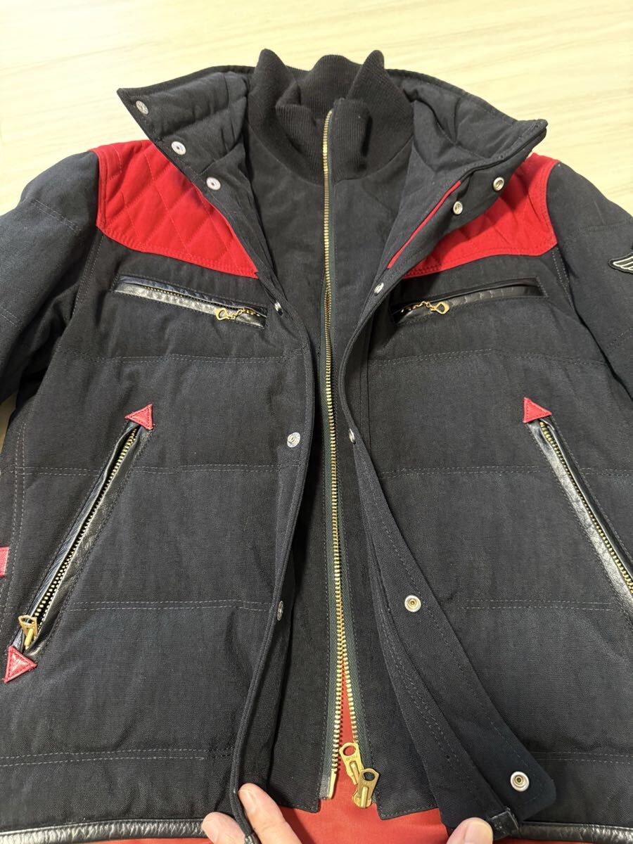 見た目はヴィンテージ・モーターサイクル/アメカジ調。ブラック×レッドの切り替えデザインに、レザーパーツなどブランドらしいディテールが効いた一着です。中綿には「ダウン90%/フェザー10%」を使用。軽く、かつ高い保温性を兼ね備えた仕様です 。ハイエンドなダウンならではの“暖かさと軽さ”が特徴です。