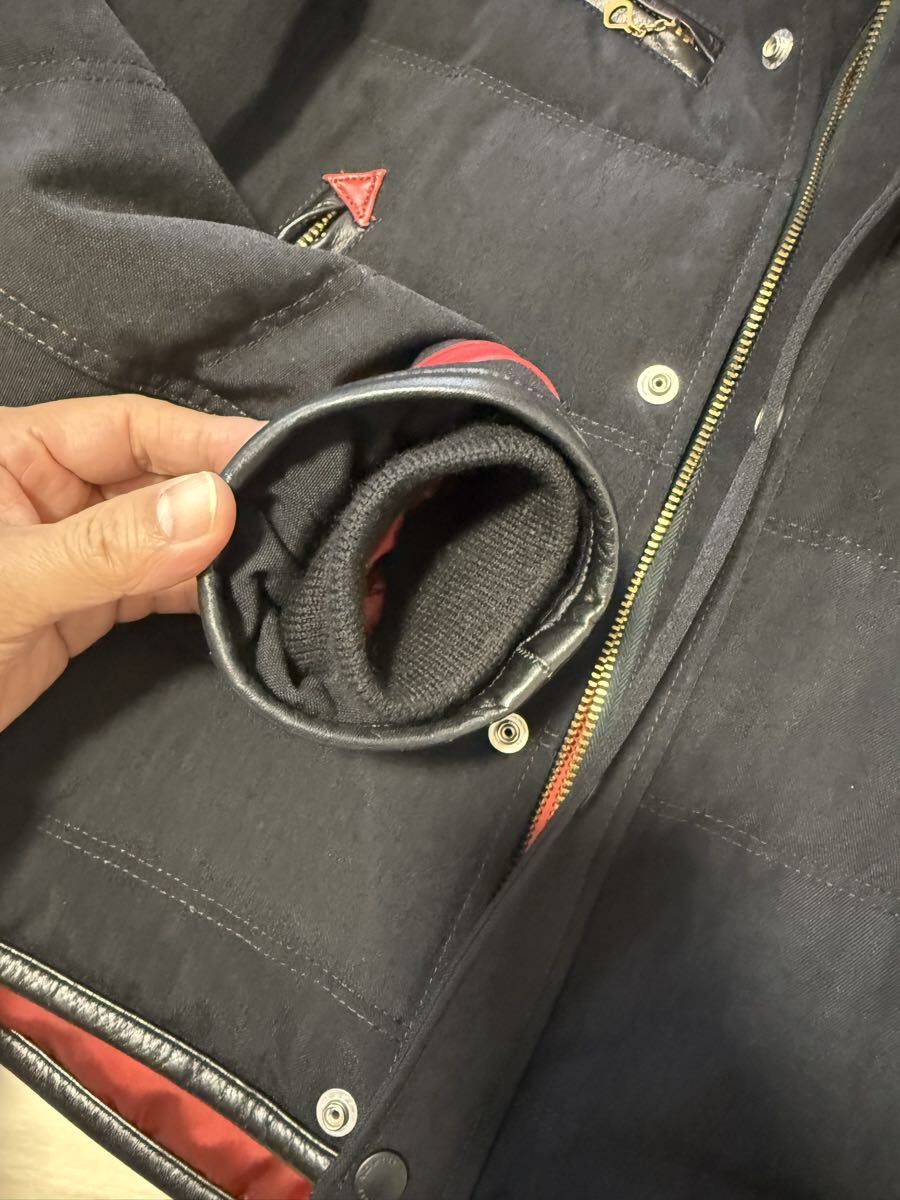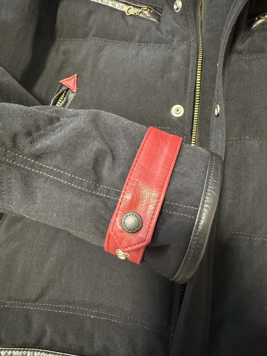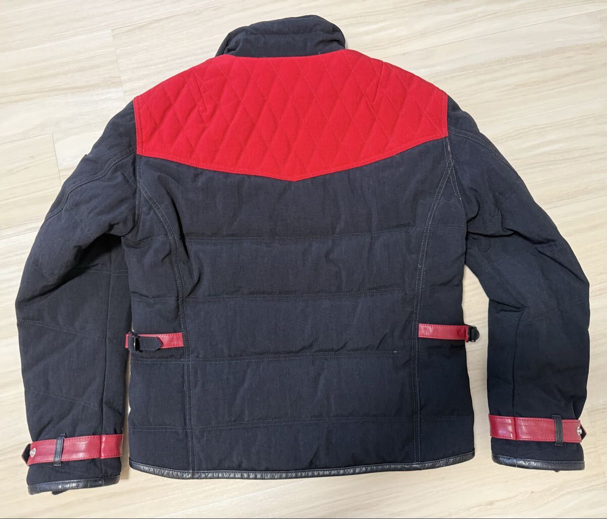 見た目はヴィンテージ・モーターサイクル/アメカジ調。ブラック×レッドの切り替えデザインに、レザーパーツなどブランドらしいディテールが効いた一着です。中綿には「ダウン90%/フェザー10%」を使用。軽く、かつ高い保温性を兼ね備えた仕様です 。ハイエンドなダウンならではの“暖かさと軽さ”が特徴です。