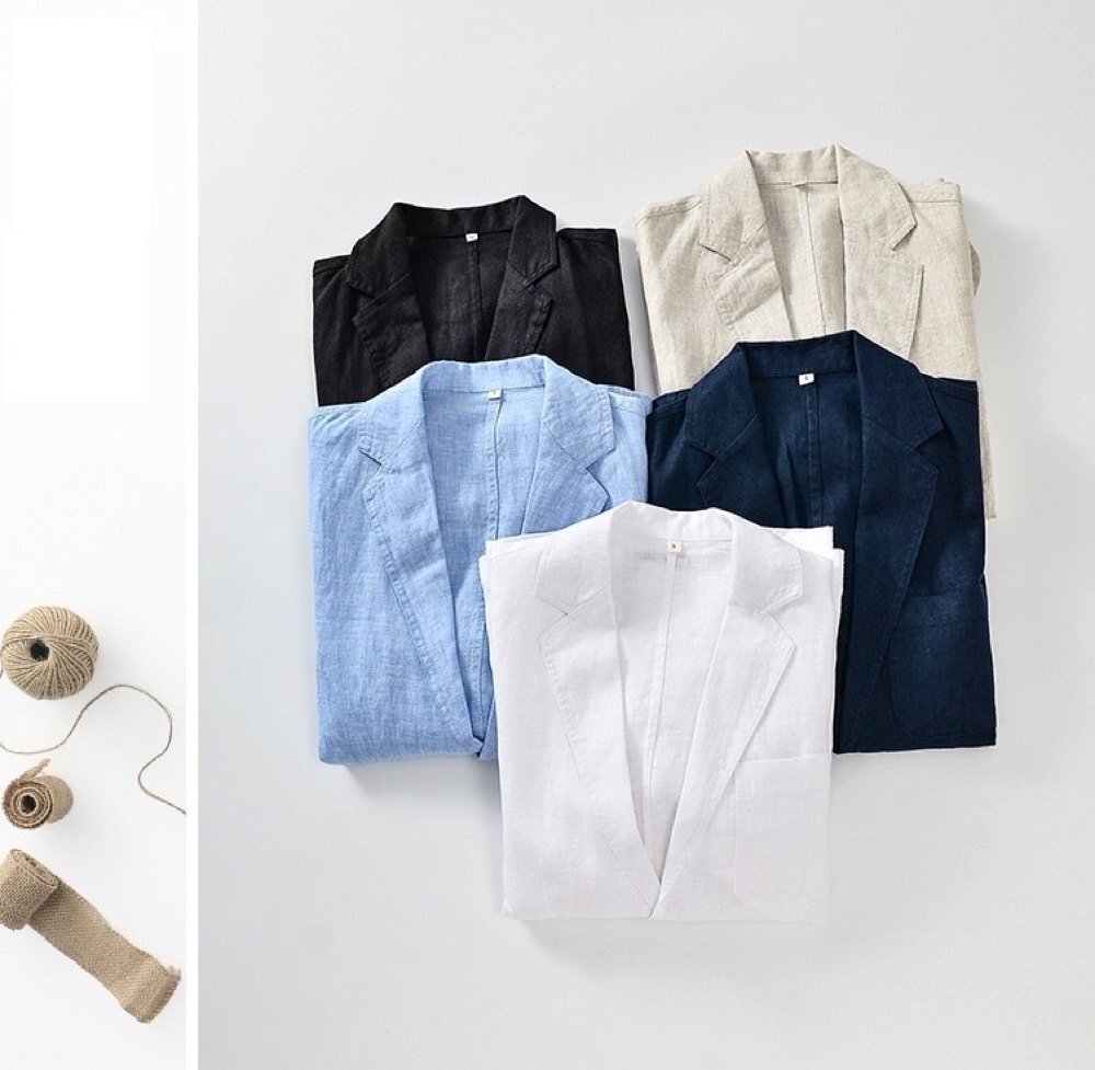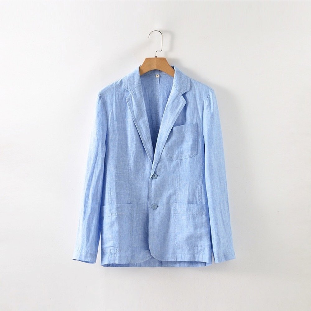 リネンジャケット テーラードジャケット メンズ サマージャケット ブレザー スーツ 麻 ビジネススーツ 長袖 コート 紳士服 ブルー XL