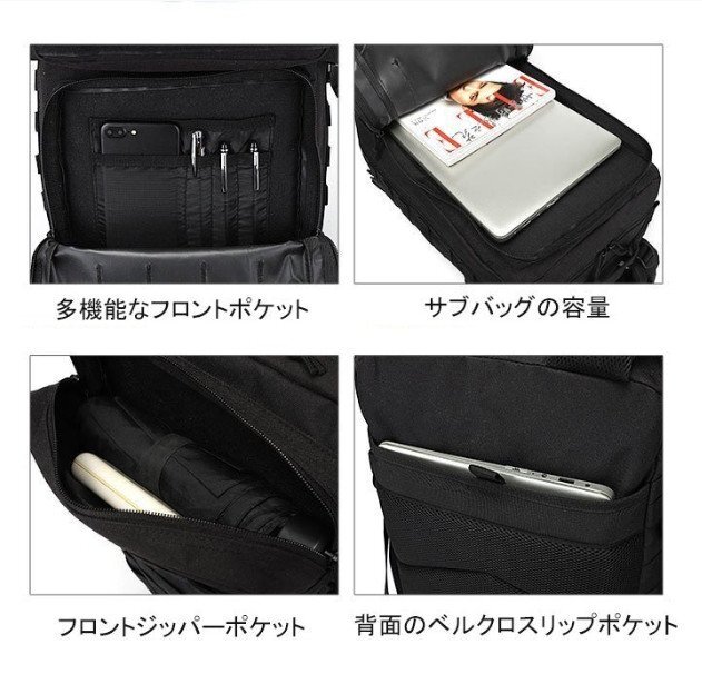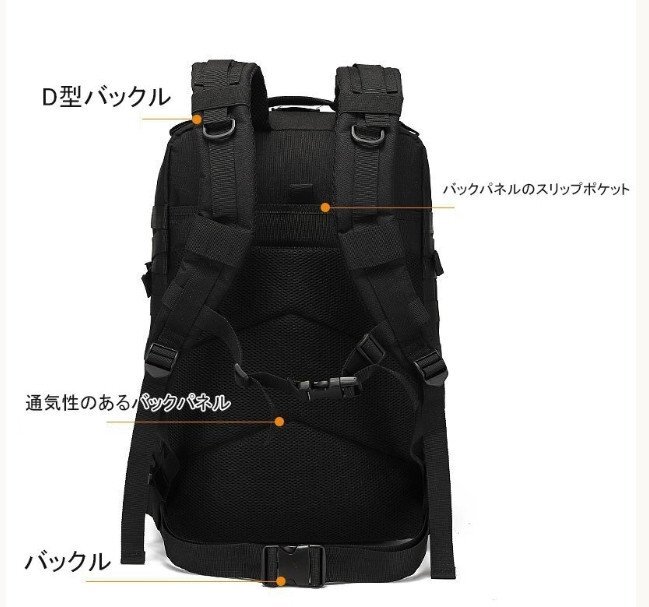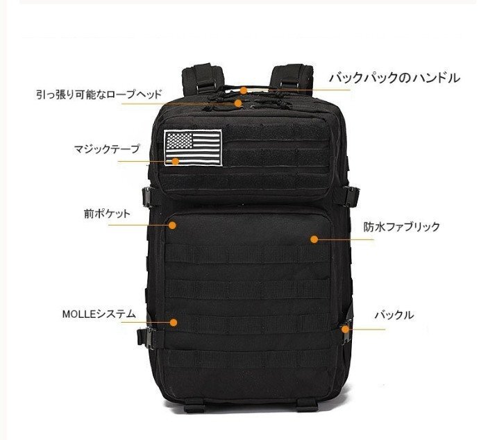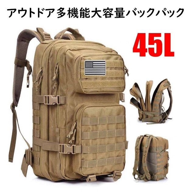 戦術迷彩バッグです リュック バックパック 45L 大容量 多機能 丈夫 頑丈 通学 登山 旅行 1泊 宿泊 撥水 防災 カーキ (A55)