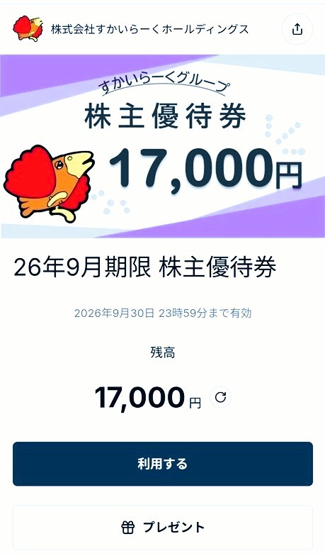 ★URL通知無料&クレカ/PayPay残高払い可★ すかいらーく 株主優待 電子チケット 17000円分 有効期限:2026年9月30日