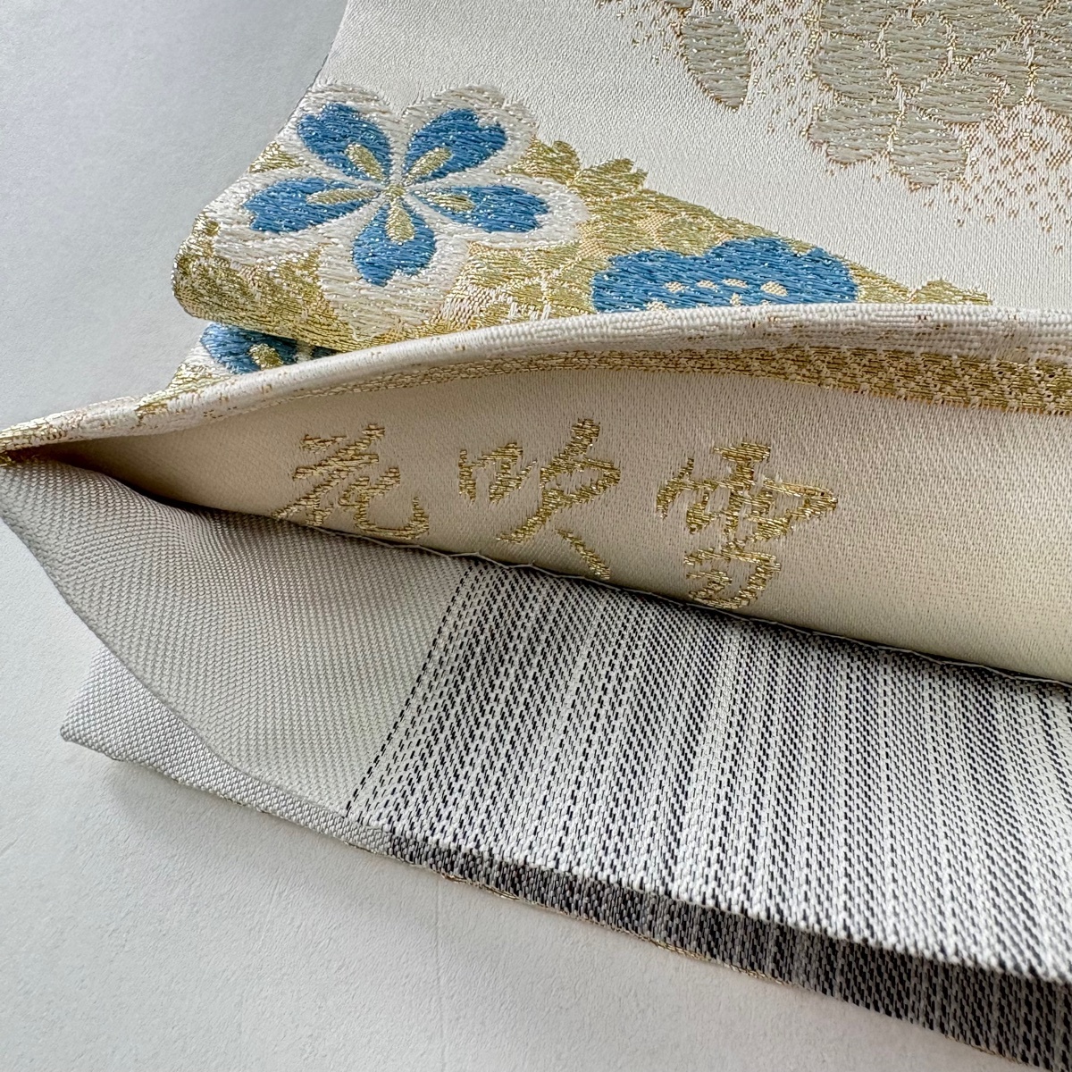 | 袋帯 美品 秀品 桜 桜の花びら 金銀糸 箔 クリーム 六通 正絹 【中古】 |