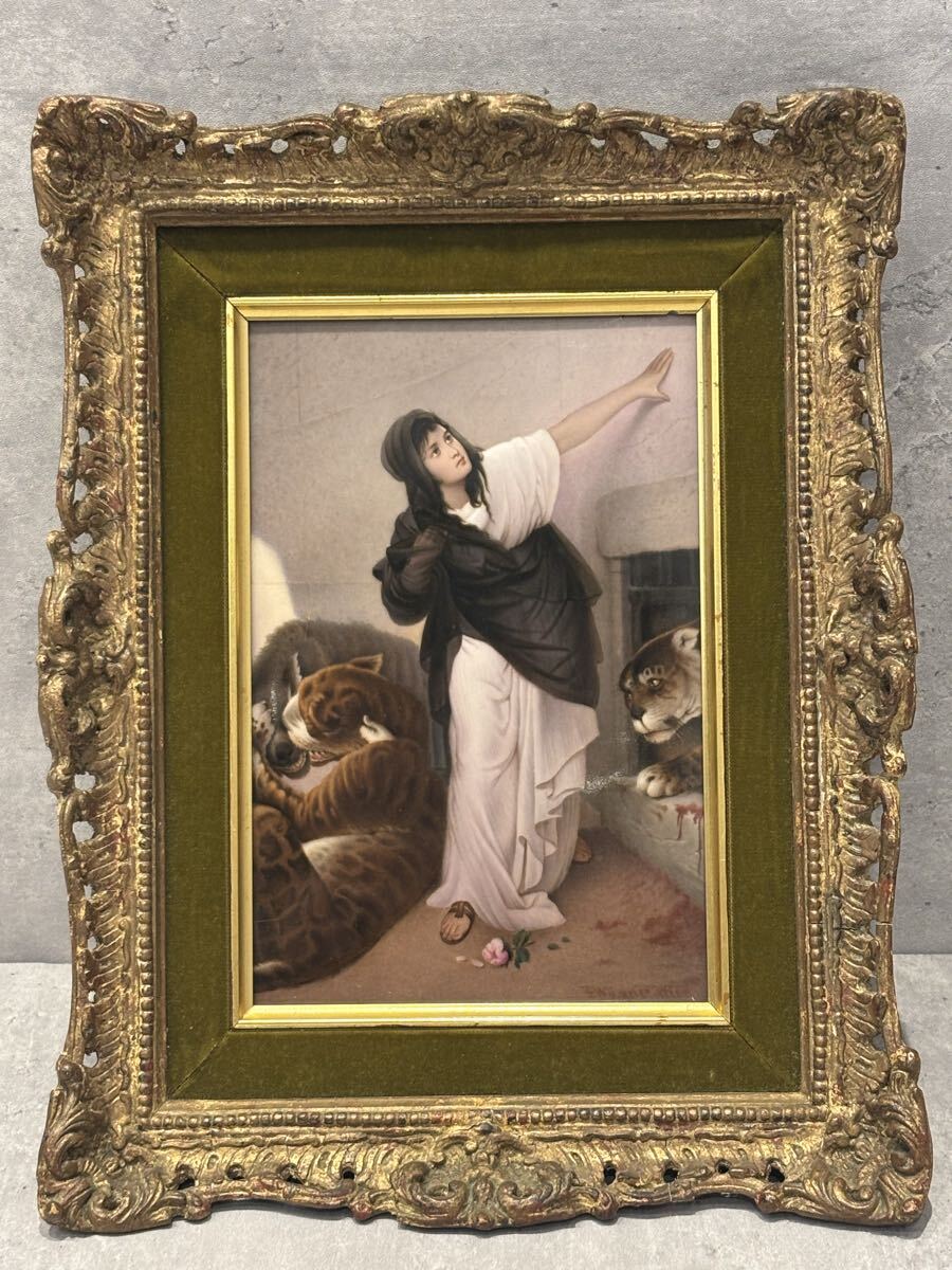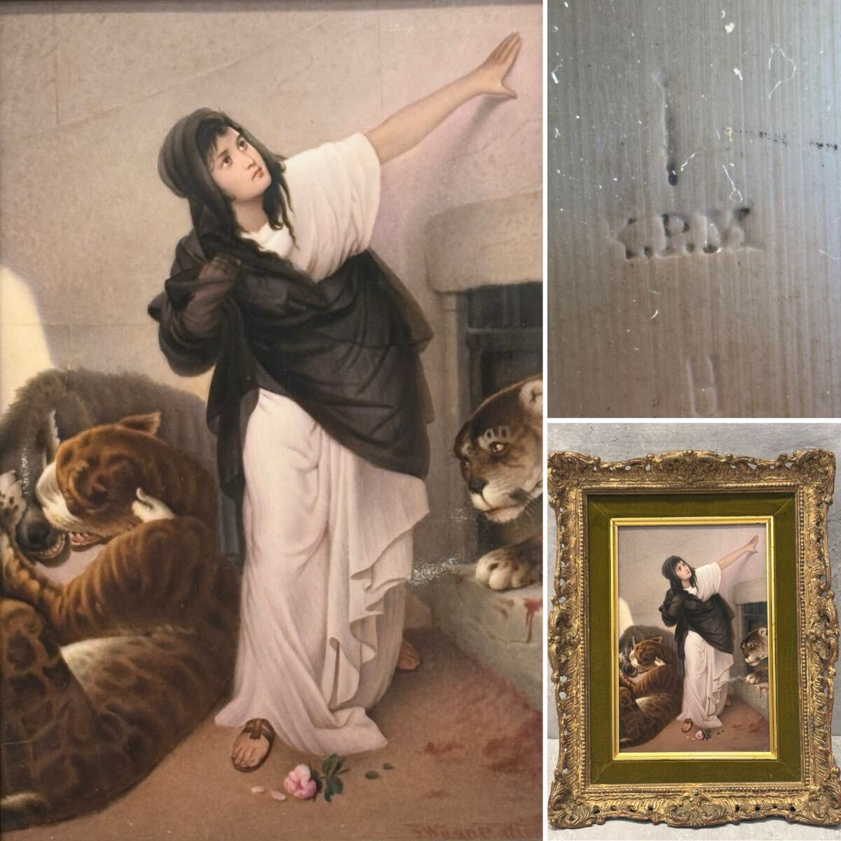 ◇トレモ◇博物館級 19世紀【KPM ベルリン王立磁器製陶所】手描陶板画 ガブリエル・フォン・マックス原画『The Last Token』Wagnerサイン プラーク ダブルスタンプ/b>