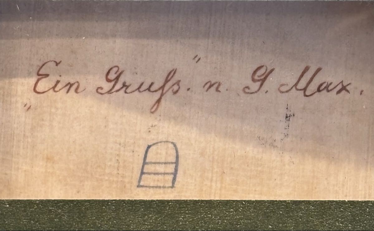 裏面には “Ein Gru n. G. Max.”(ガブリエル・マックスに基づく作品) と注記されるなど、