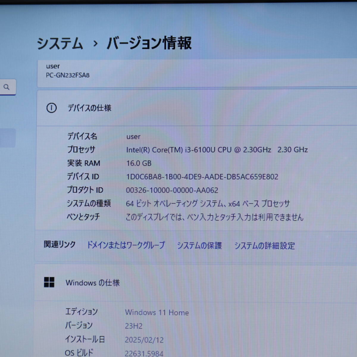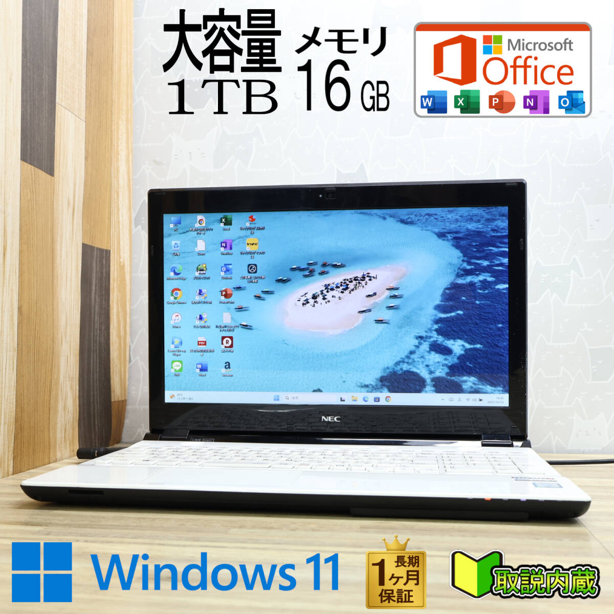 ★完動品 開けばキレイ 高性能6世代i3!大容量1TB メモリ16GB★GN232F Core i3-6100U Webカメラ Win11 MS Office2019 H&B★P94364