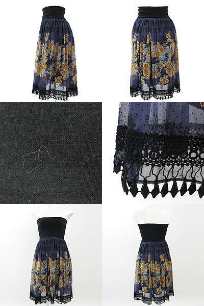 | エレガントなシフォンスカートを入荷いたしました♪ 落ち着いたパープルカラーに花柄がアクセントになった一枚。 ウエストがゴム仕様なので、スカートはもちろん、ベアチュニック としてお召し頂け、2WAYで楽しめるお得なアイテムです♪ ウエスト部分に少し毛羽立ちが見られます。 ウエスト60cm(伸縮あり)スカート丈59cmリブ幅約18.5cm(ウエスト黒部分) 【サイズ】:(表記なし) 【素 材】:(】:(ポリエステル100%フロッキー:レーヨン50%ナイロン50%別布:ポリエステル60%レーヨン35%ポリウレタン5%裏ポリエステルレース:綿) 【 色 】:(パープル) 【程 度】:(AB) **** 8360-20101005-004 499 043 | ||||