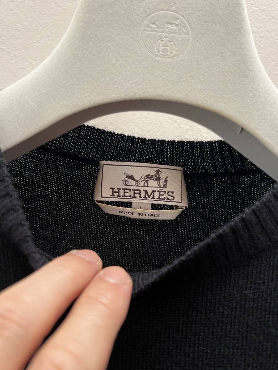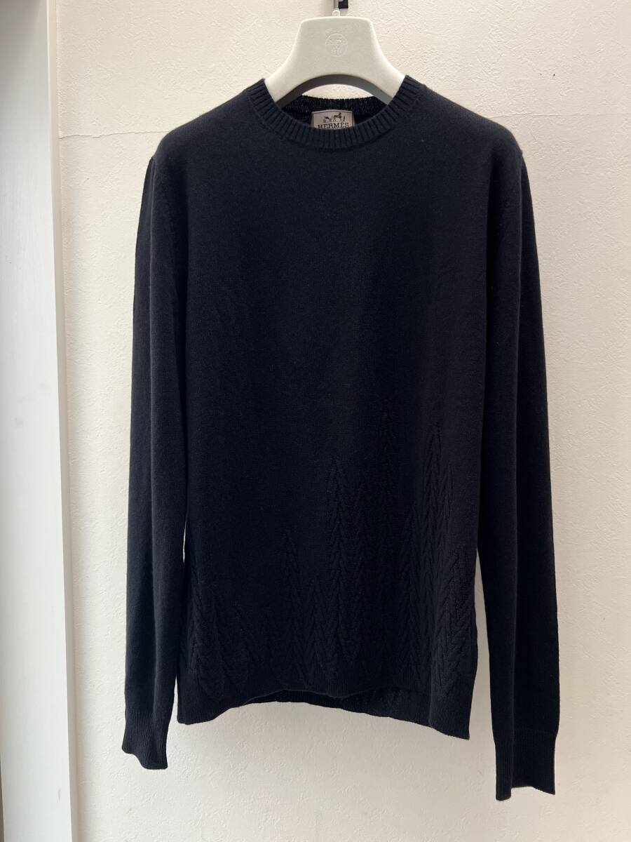エルメス 2016AWコレクションの象徴 カシミア100% 国内正規極美品 サイズL 定価35万円 ブラック 荘厳なる木々 クルーネック ニット 黒