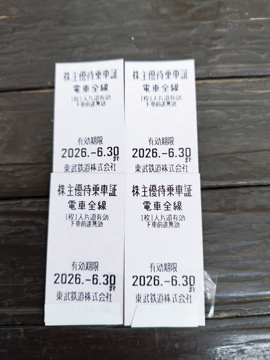 東武鉄道 株主優待乗車証2026/6/30 4枚セット 回数券型