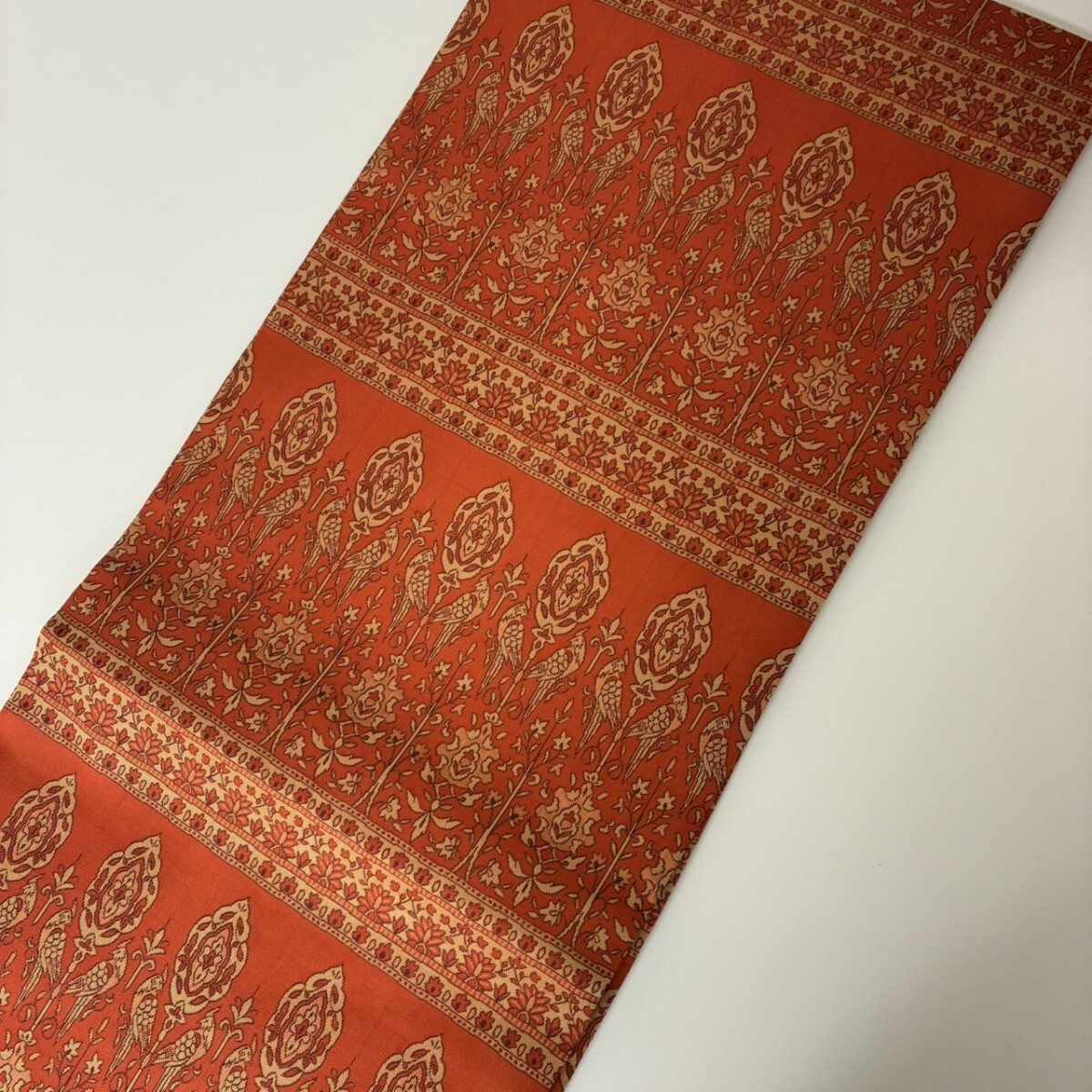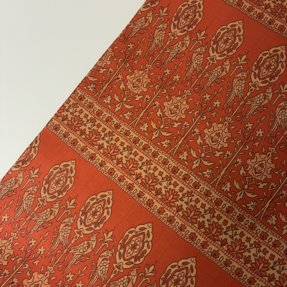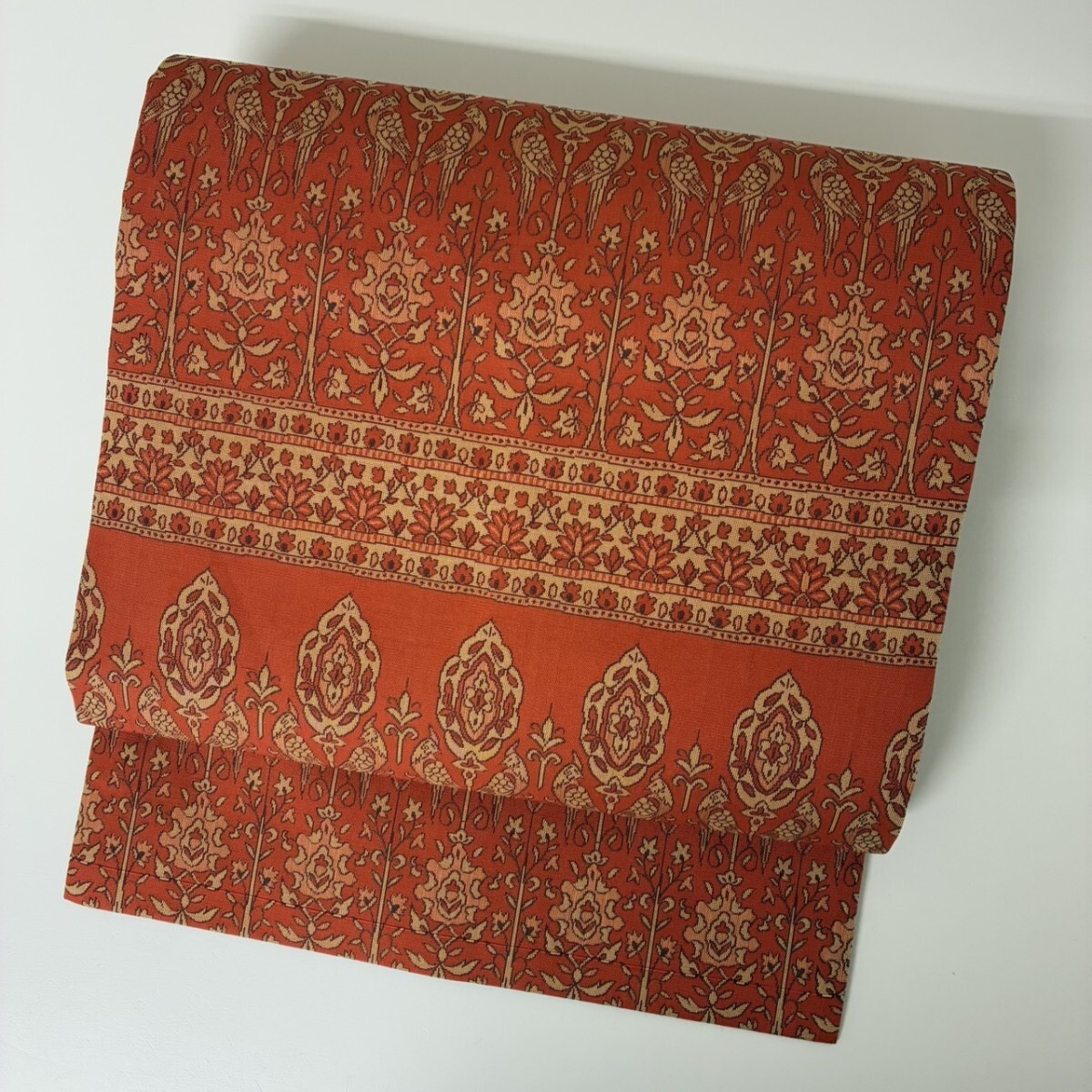 名古屋帯 正絹 織柄 向かい鳥 更紗 九寸 KK-2695 【楓】