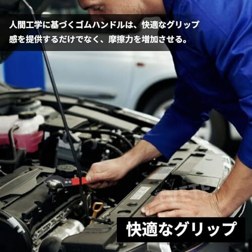 【スパナのデザイン】レンチハンドルは人間工学に基づいて設計されており、快適なグリップを実現し、C型形状が最適な力伝達を提供して体力を節約し、側面の穴と溝としっかりと一体化しています。