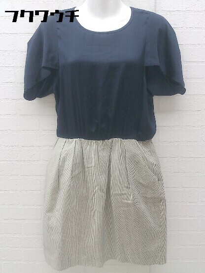 ◇ KBF ケービーエフ URBAN RESEARCH 切替 半袖 膝丈 ワンピース サイズ1 ネイビー ホワイト レディース