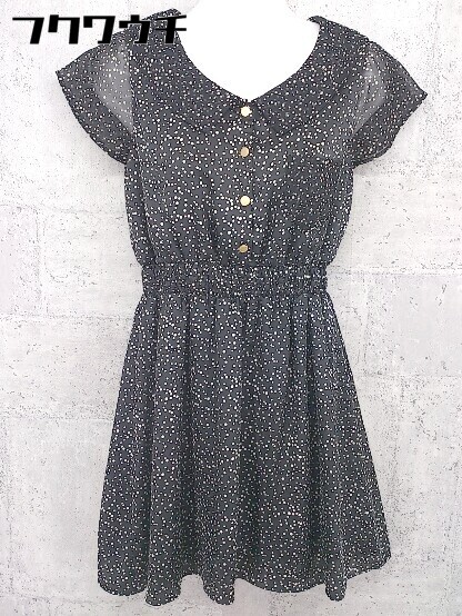 ◇ ◎ Khaju カージュ SHIPS シップス 総柄 半袖 ミニ ワンピース ブラック レディース