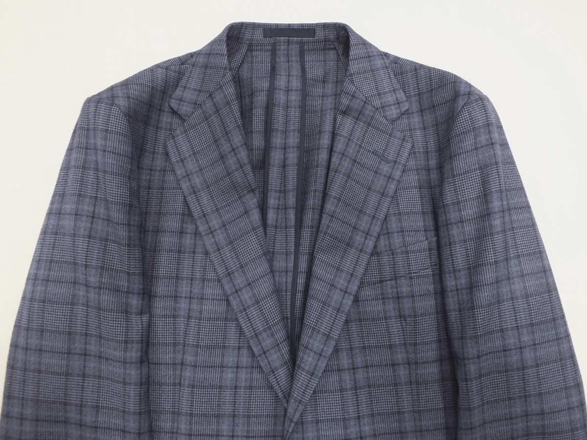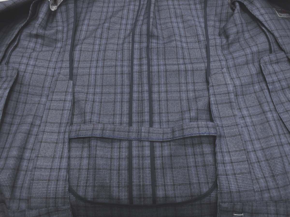 創業以来、ロンナーは半世紀を超え、一貫して高品質な服づくりを続けてきました。目指してきたのは最高の着心地と型崩れしにくい堅牢性、そして美しい外観。古くからイタリア、アメリカなどのトップメーカーとの提携を通して、さらなる技術の向上にも努めてまいりました。 特色 ・肩回りの仕立て技術が優れていて着心地抜群 アイテム:オールシーズン背抜きジャケット サイズ:表記サイズ40S A7【胸囲96-ウエスト84-身長180】 上着ベンツ:サイドベンツ 上着胴裏:背抜き仕様 袖釦:4個 色:グレー系 柄:ネービー系の格子 表素材:毛100 裏素材:キュプラー100 袖裏:キュプラー100(高級品の証) 縫製:日本 詳細な寸法 表記サイズ:50S(A7相当) 胸囲113cm/胴廻り100cm/上着丈75cm/肩幅47.5cm/袖丈63cm | ||||