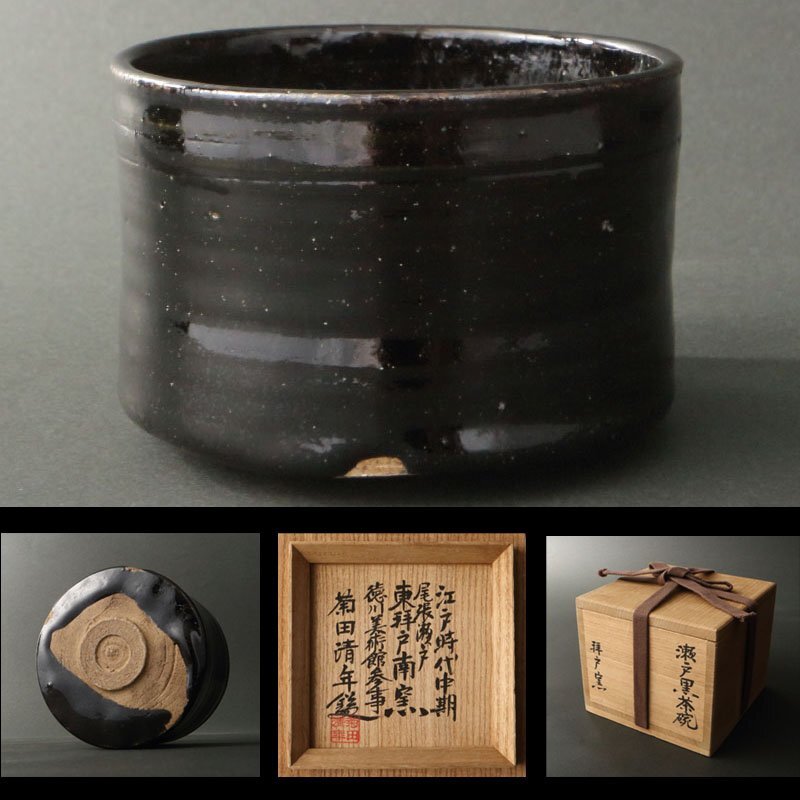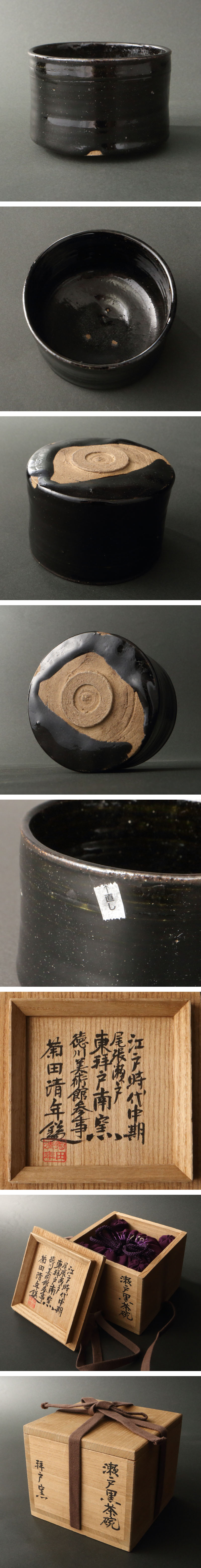 委託HK◇江戸中期 瀬戸黒茶碗 尾張瀬戸東拝戸南窯出土 菊田清年極