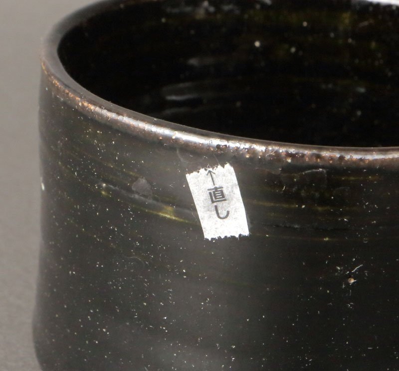 委託HK◇江戸中期 瀬戸黒茶碗 尾張瀬戸東拝戸南窯出土 菊田清年極(茶道具 抹茶碗 美濃焼 筒茶碗 拝戸窯 瀬戸美濃 発掘品 出土品)