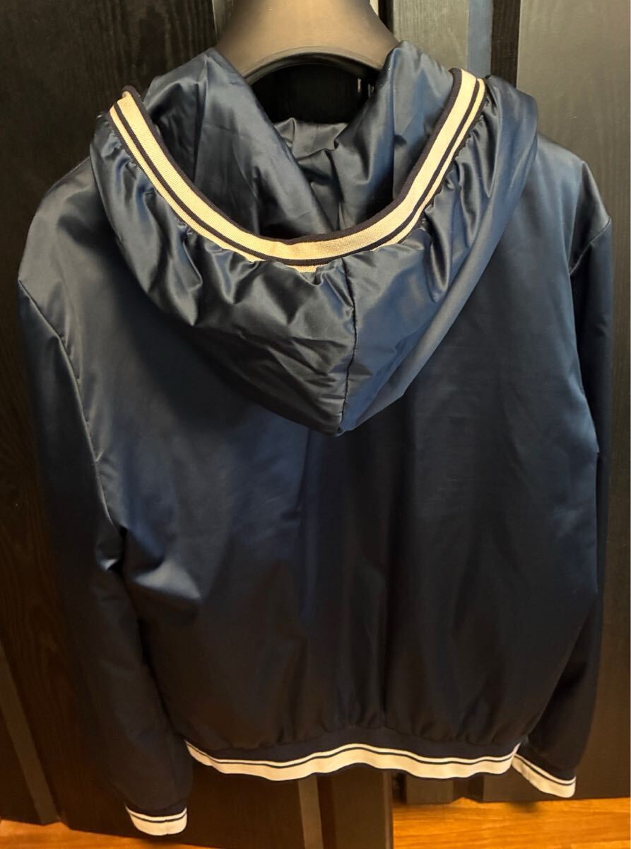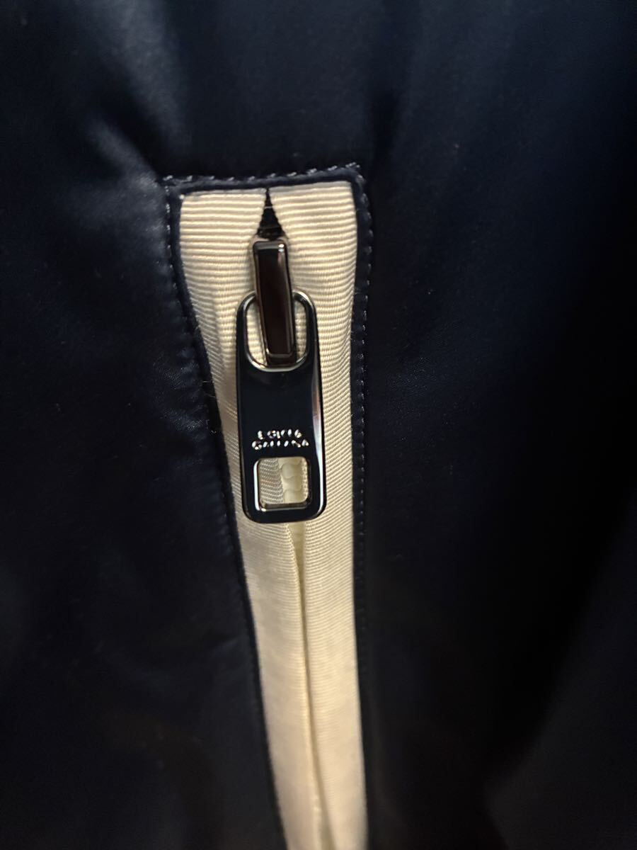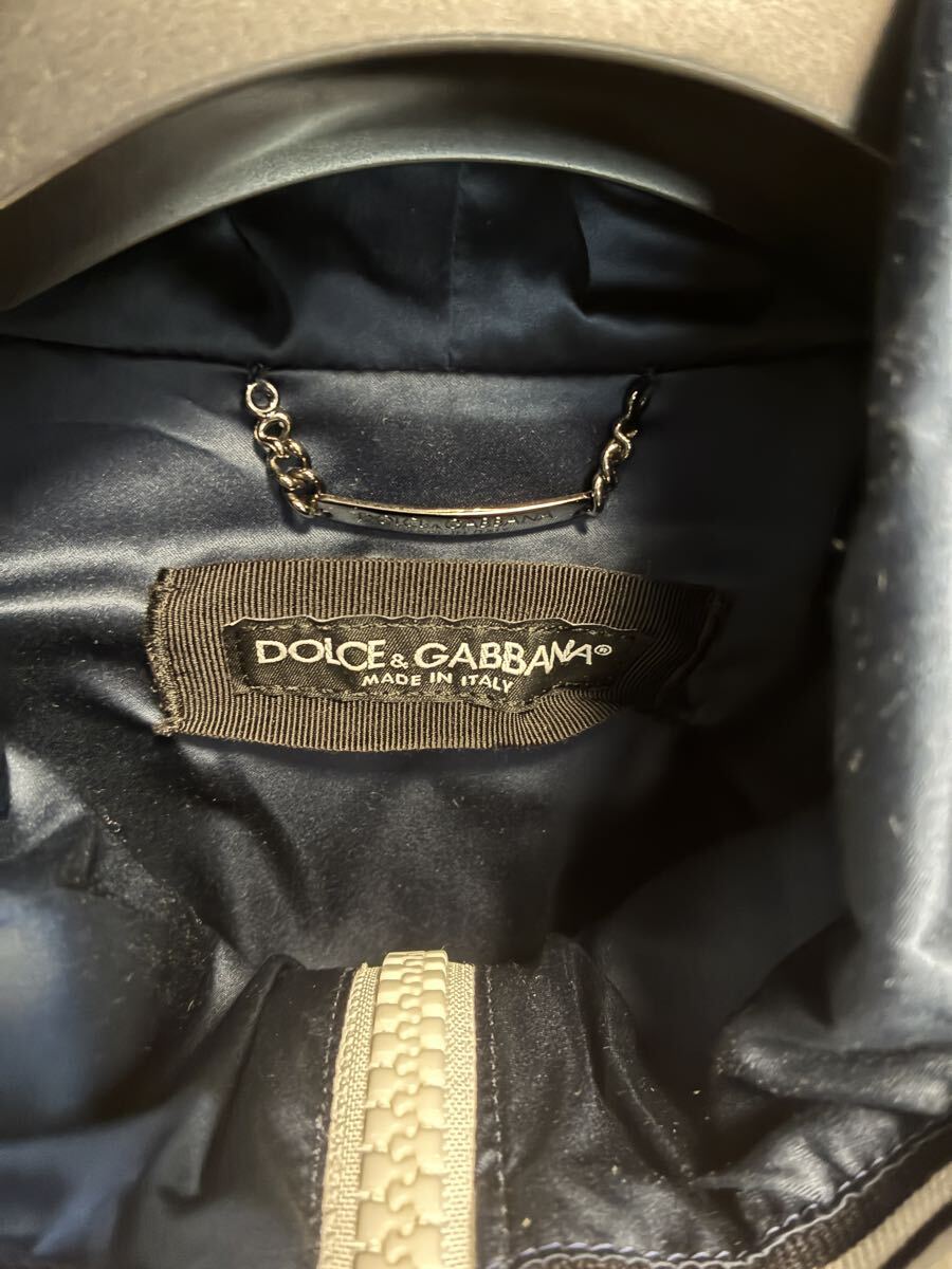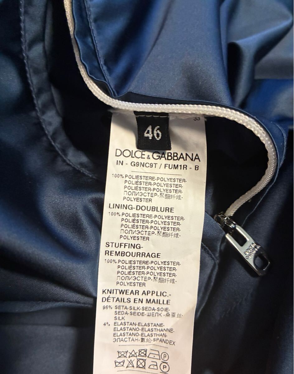 ネイビーのフード付きジャケット、Dolce & Gabbanaのロゴ入り。