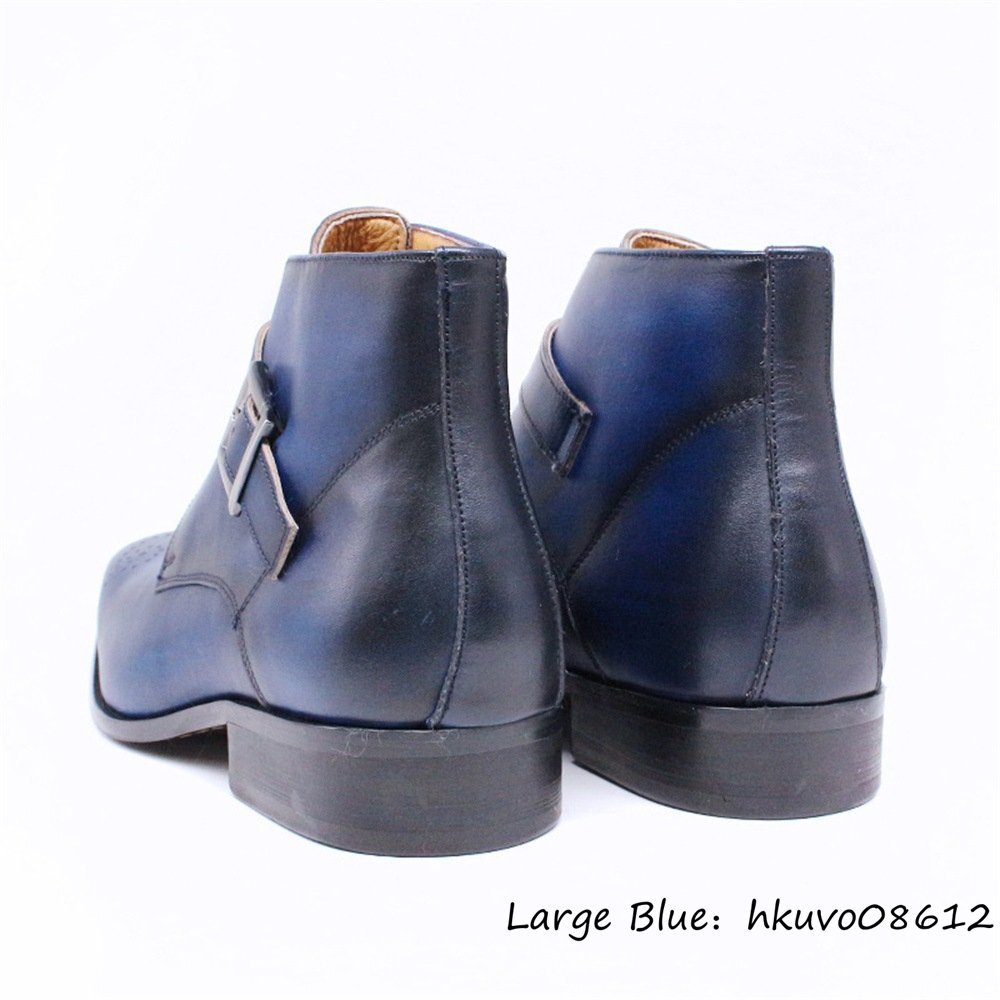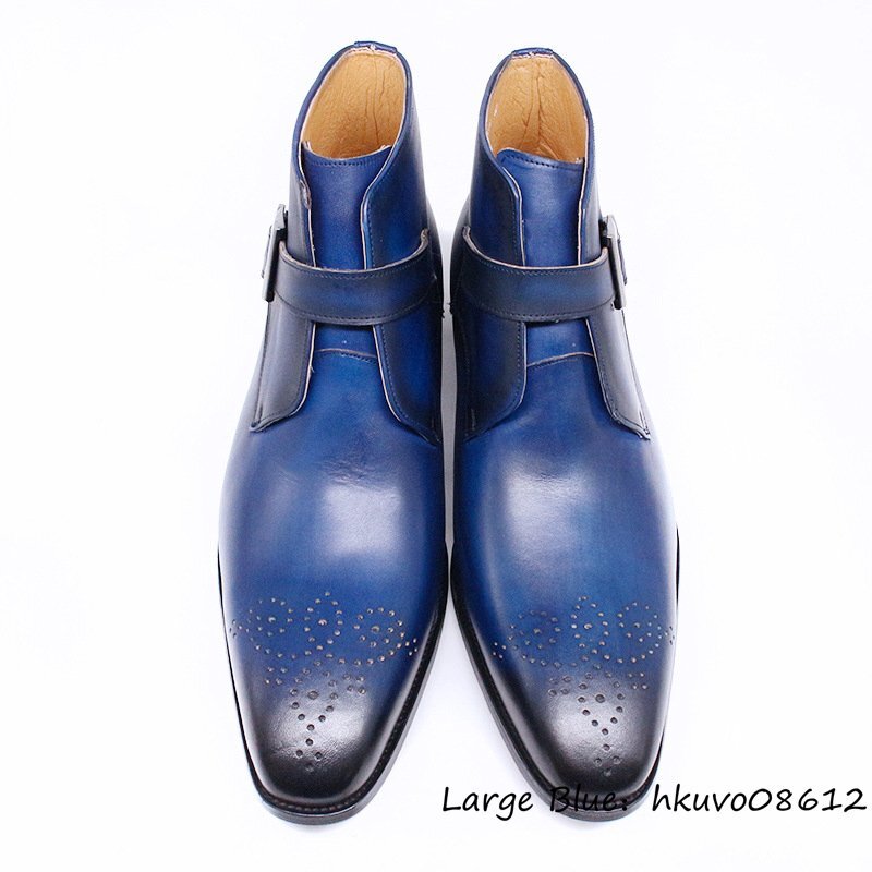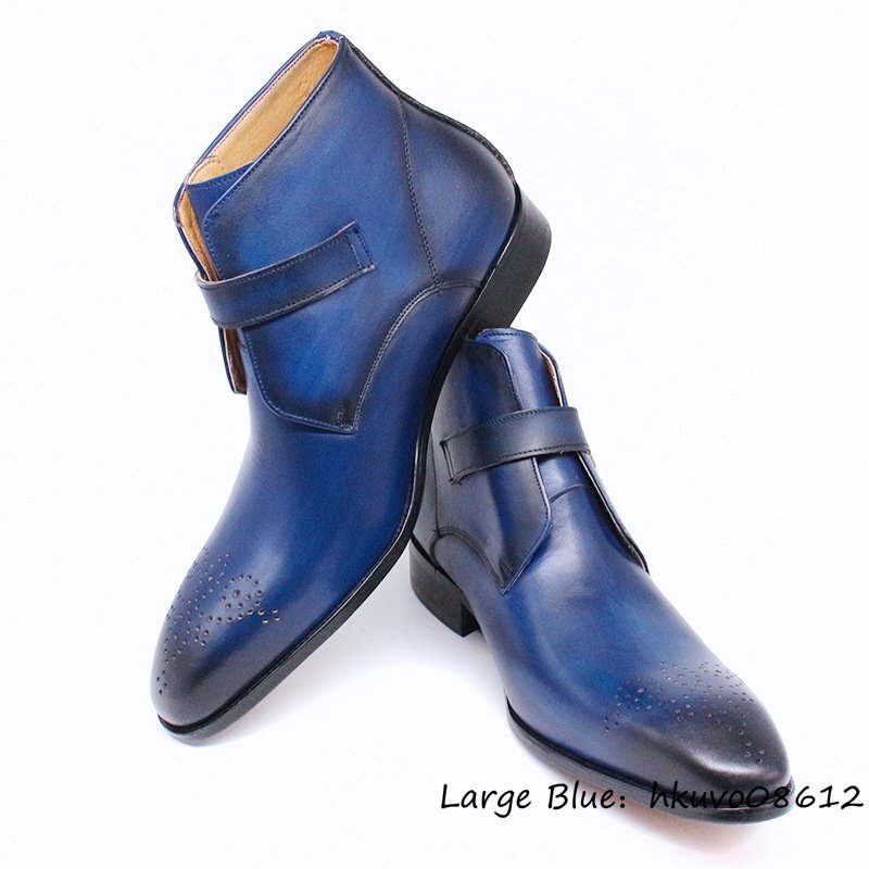 最高級★超希少 本革 マーティンブーツ ショートブーツ 上質牛革 職人手作り レザーシューズ ビジネスシューズ 紳士靴 ブルー 26.5cm