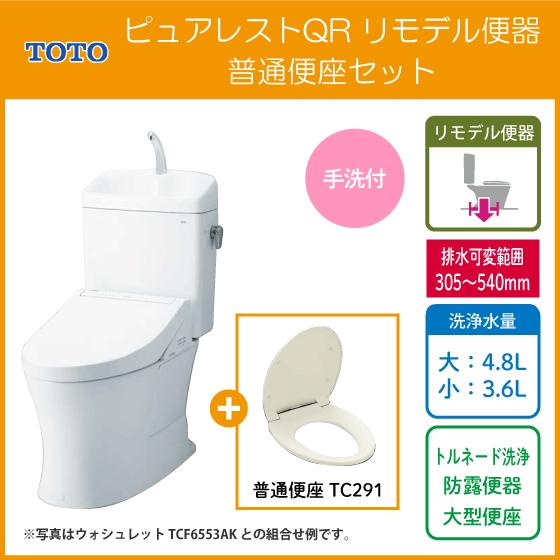 ★ TOTO ピュアレストQR リモデルタイプ(手洗付) 普通便座セット ★