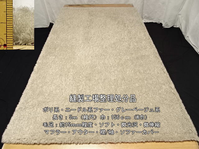 | ポリ系 ニードル系/ファー 毛足約15mm ソフト グレーベージュ 5m | |
