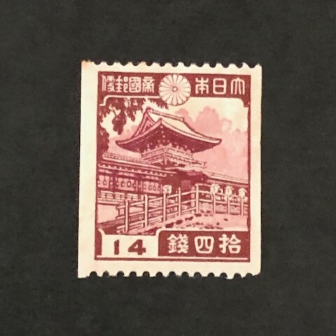 昭和コイル 14践春日大社 未使用 裏のりあり ヒンジ跡なし 裏面に少しわあり