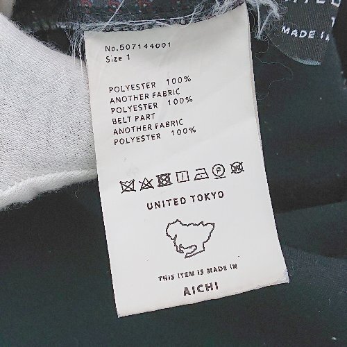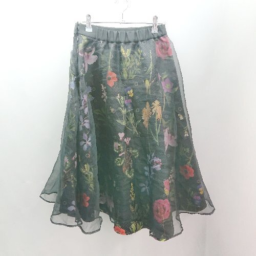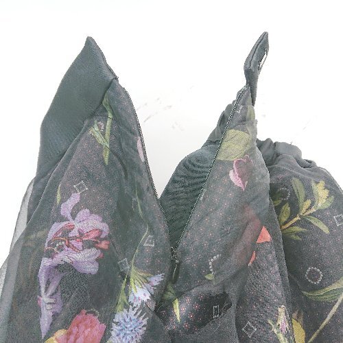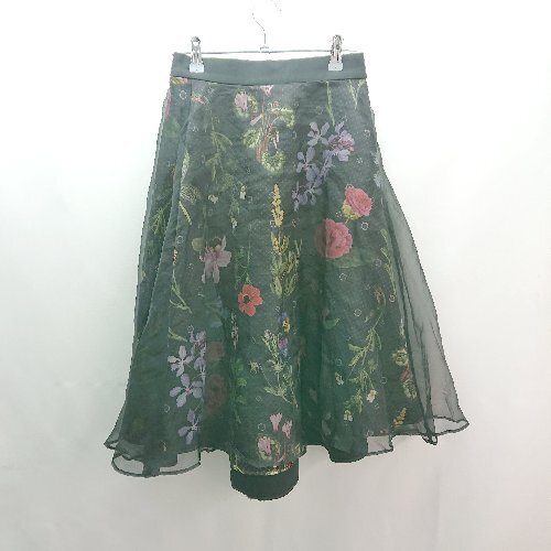 ◇ UNITED TOKYO ハリ感 花柄 プリント シアー 上品 ガーリー 膝丈 フレア スカート サイズ1 ブラック マルチ レディース E