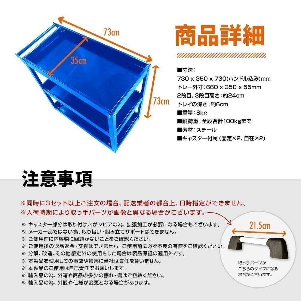 ツールワゴン 3段式 工具 ツールカート 工具ワゴン ワーキングカートワゴン 工具カート 工具箱 ツールボックス キャスター 整備用ワゴン 青
