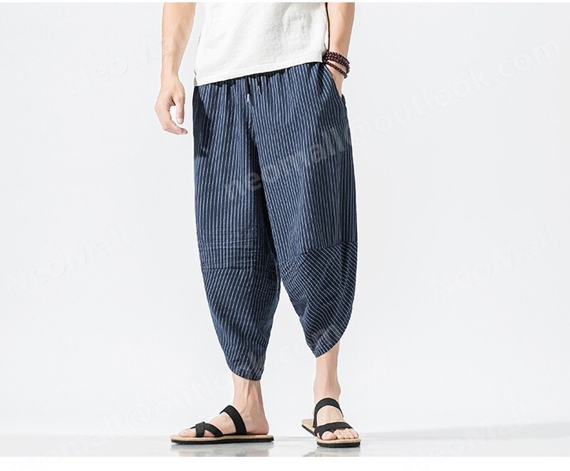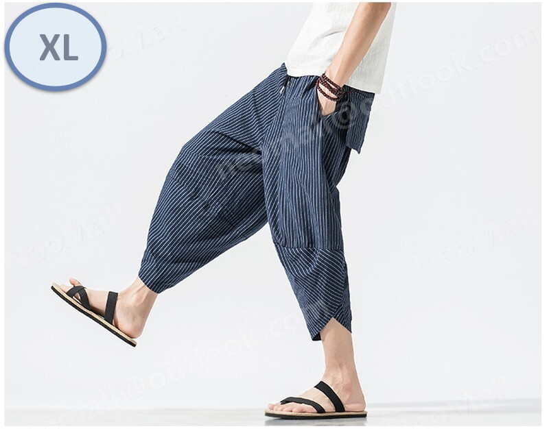 お買い得☆メンズ サルエルパンツ ブルー XL カジュアル ヒップホップ 7分丈 スウェット 無地 ポケット付 オールシーズン【063】
