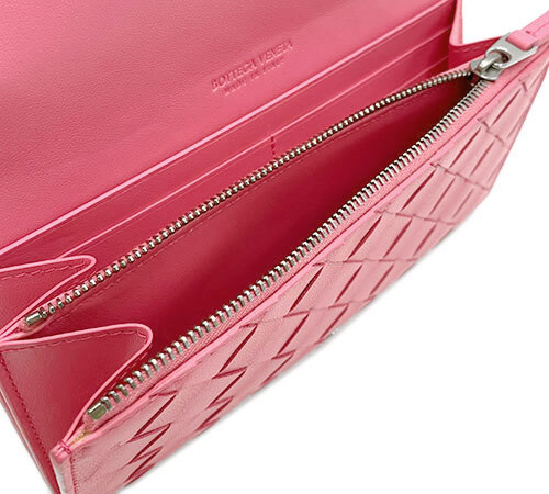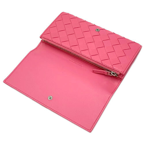 ボッテガ ヴェネタ 長財布 600873-5632 レディース フラップ 被せ蓋 イントレチャート 革 ナッパ シャイニーカーフ ピンク