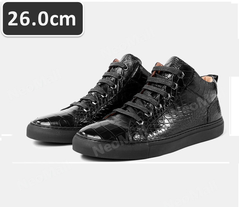 人気のクロコダイルレザー 超貴重 最高級 天然ワニ革 クロコダイル 靴 メンズシューズ 革靴 ブラック 26.0cm 【116】