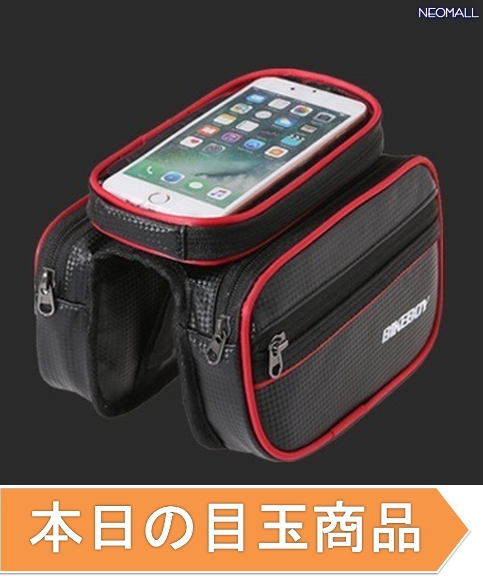 本日の目玉☆ トップチューブバッグ レッド スマホ ケース タッチパネル ポーチ 5.7インチ フロント バック 自転車 パーツ 【apa-377】