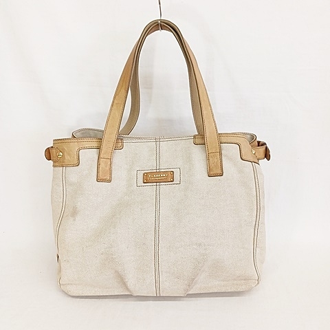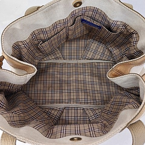 バーバリーブルーレーベル BURBERRY BLUE LABEL トートバック キャンバス レザー 合皮 裏チェック ベージュ レディース