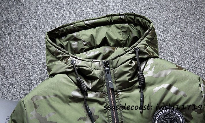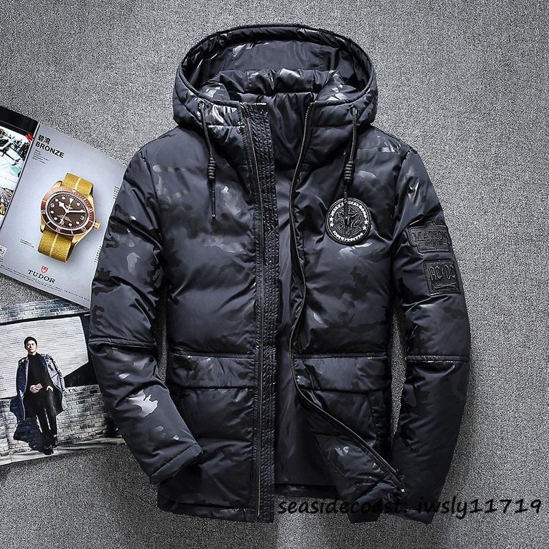 冬新品*メンズ ダウンジャケット 厚手 スキーウェア ダウンコート パーカ ワッペン付き 迷彩柄 ブルゾン アウトドア 防風防寒 ブラック 3XL