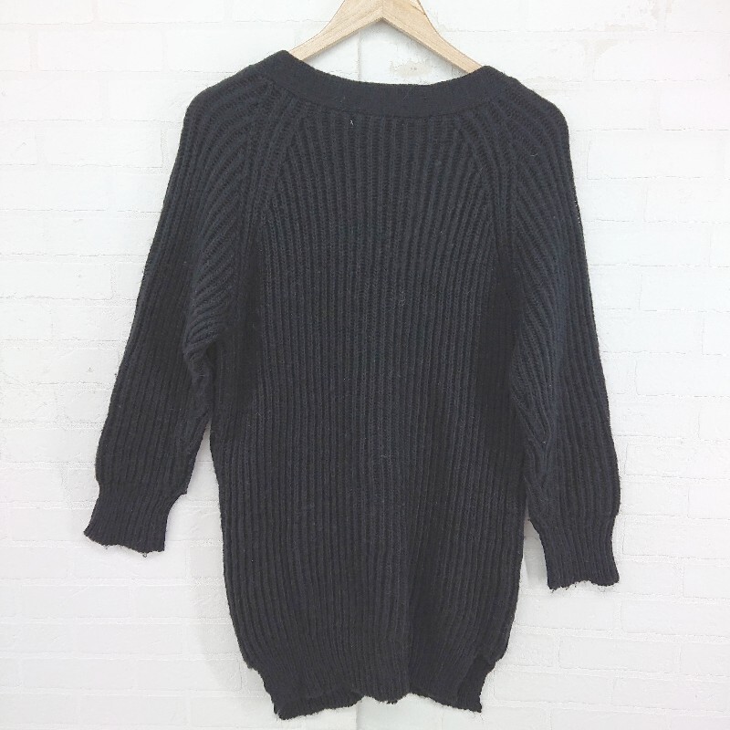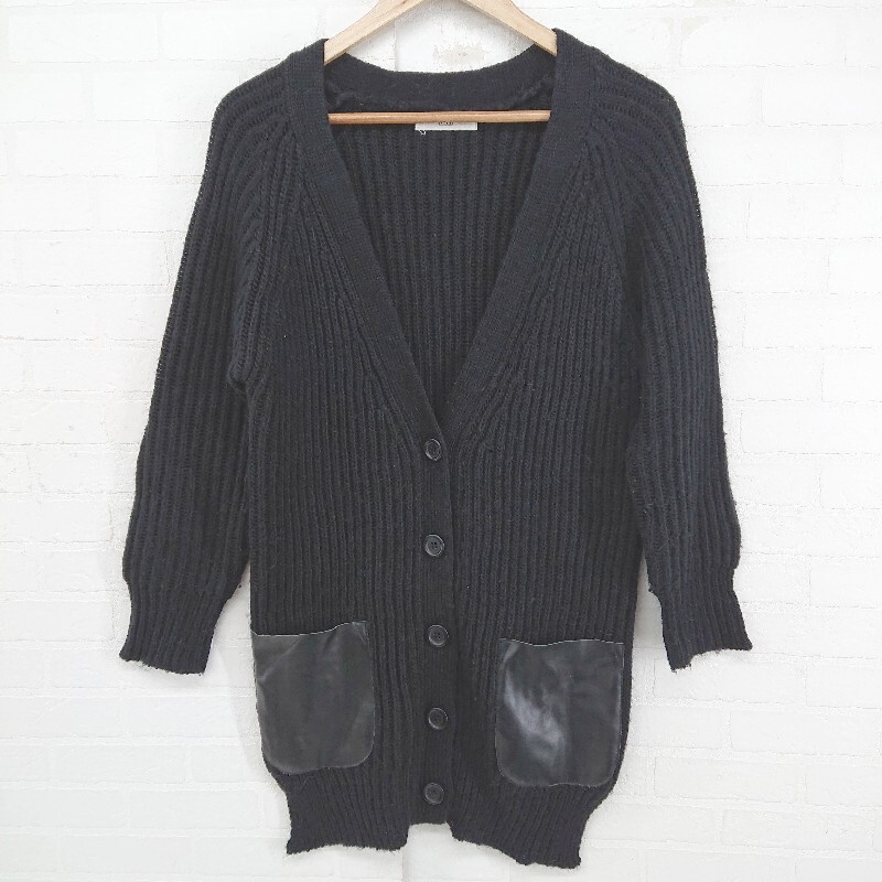 ◇ LOWRYS FARM ローリーズファーム フェイクレザー Vネック 長袖 ニット カーディガン サイズM ブラック レディース E