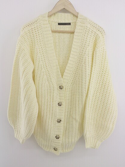 ◇ Heather ヘザー ボリュームスリーブ 長袖 ニットカーディガン サイズF アイボリー系 レディース P