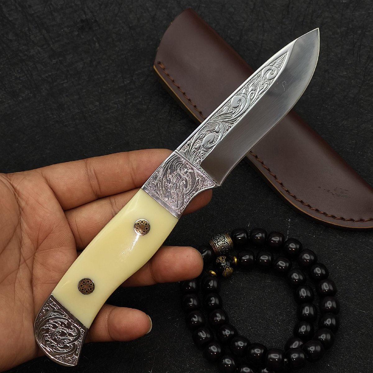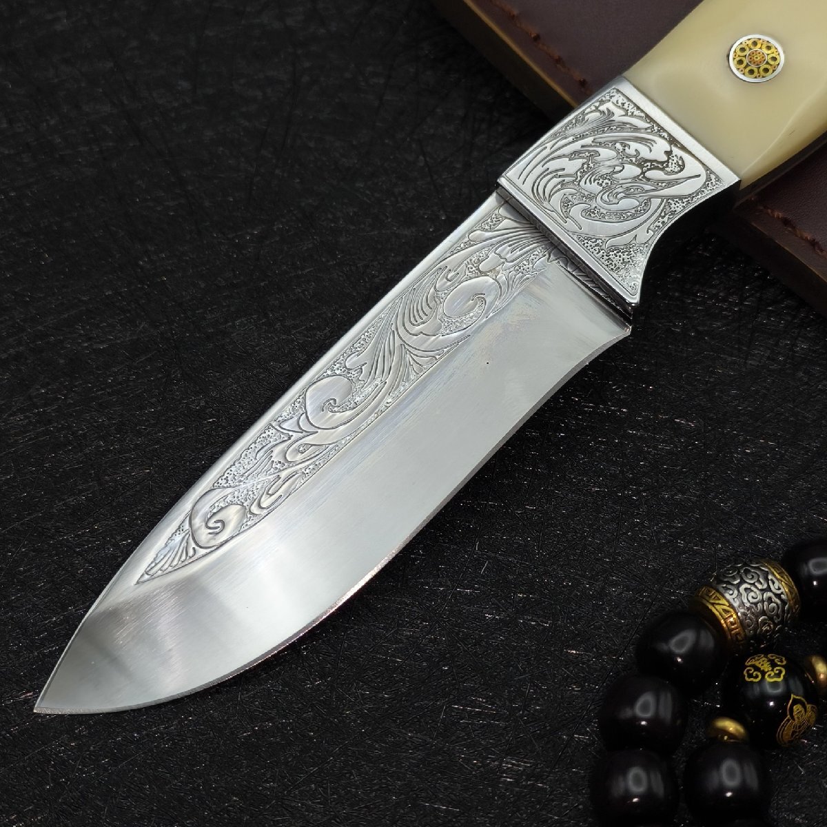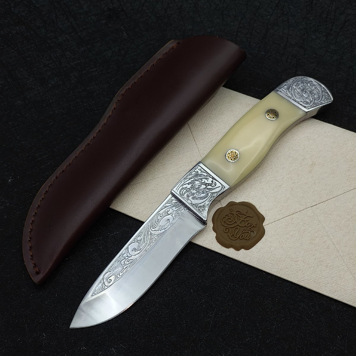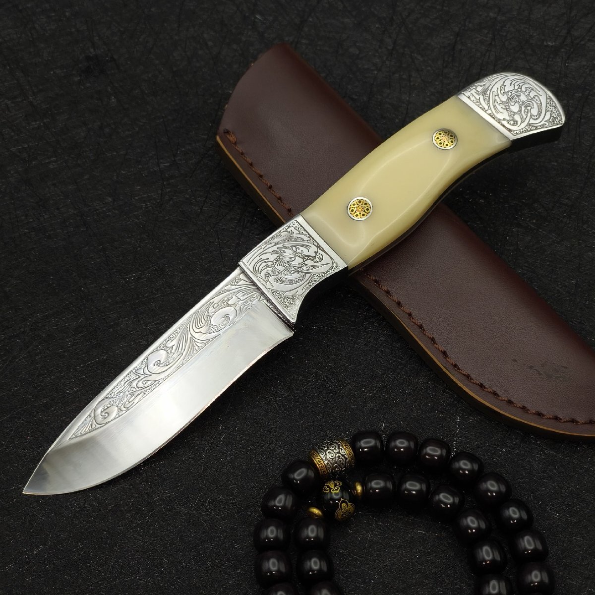 高炭素鋼製小型ストレートナイフ サバイバルナイフ 鋼製 薪割り シース付き キャンプ ハイキング 野外登山