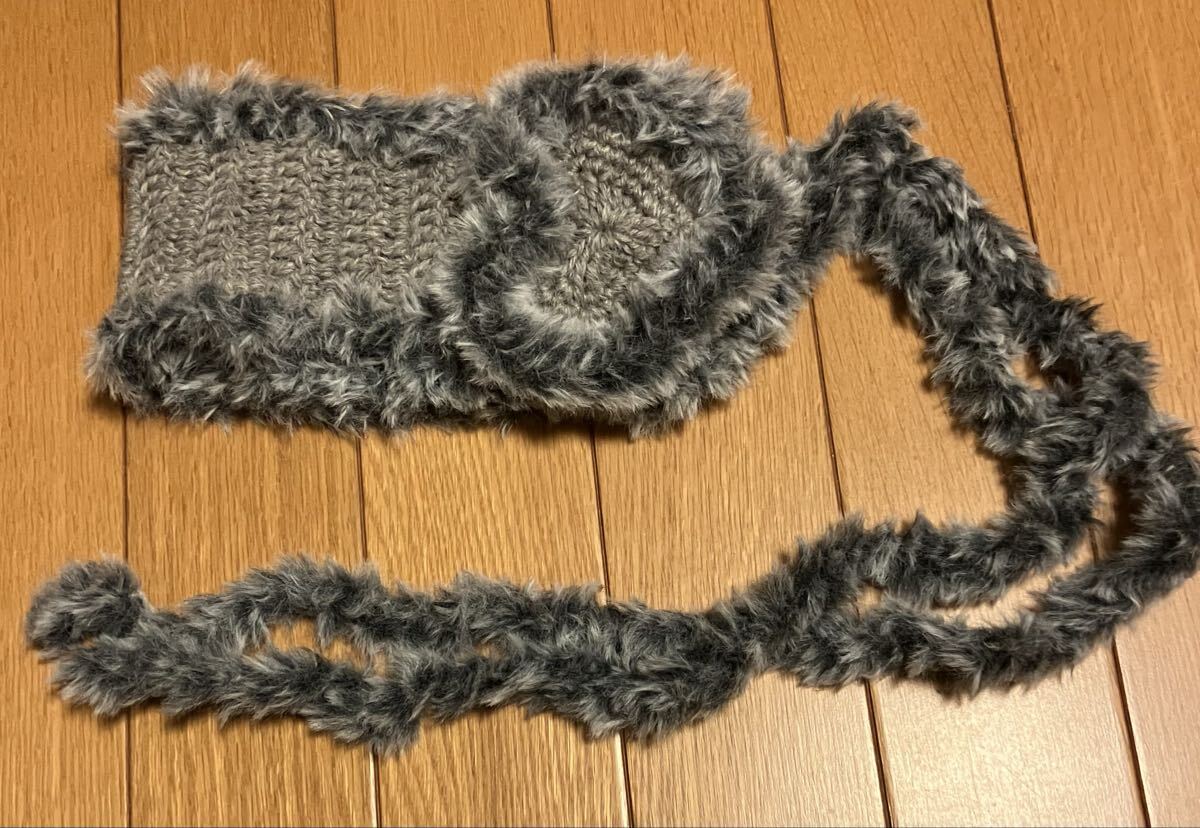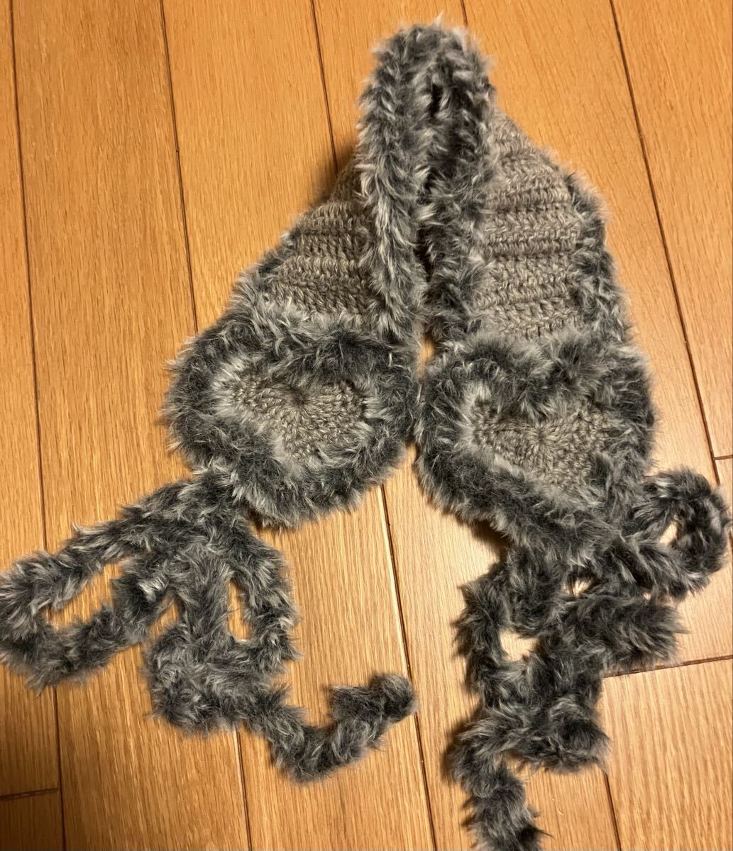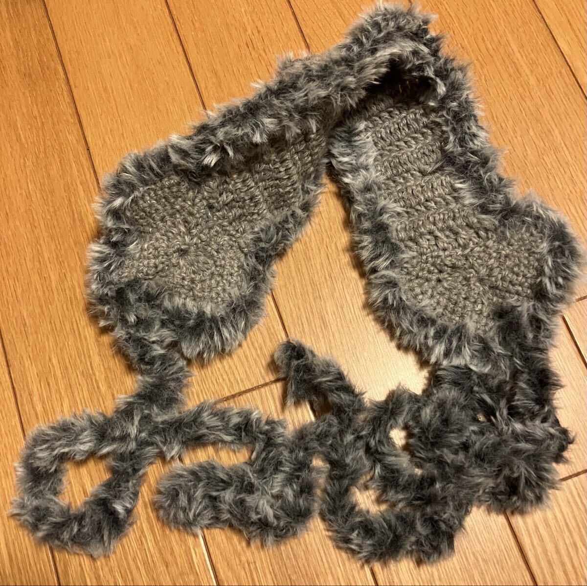 ■商品詳細■★ハンドメイドの未完成に近い(そのまま着用しても大丈夫ですが止めている部分しっかりしていません。)★毛糸使用★色:グレー・グレーまだら★サイズ:頭~耳43cm位・紐の長さ55cm位・頭幅9cm位・耳10cm位です■発送方法■★クリックポスト185円■支払方法■★かんたん決済